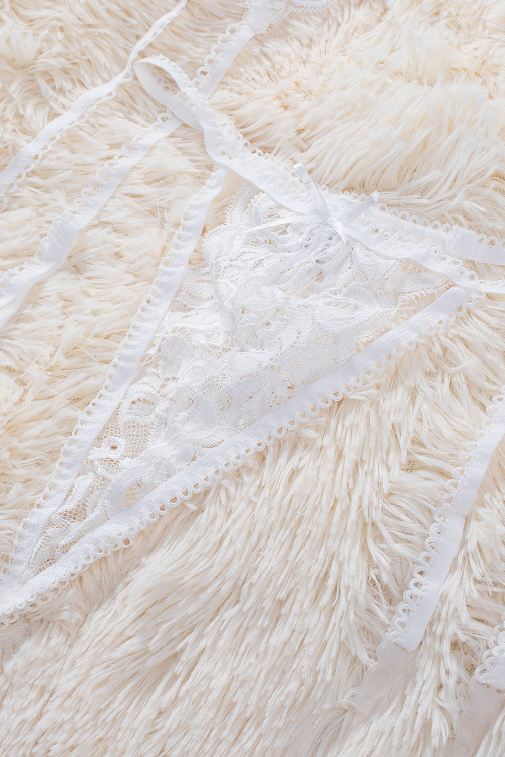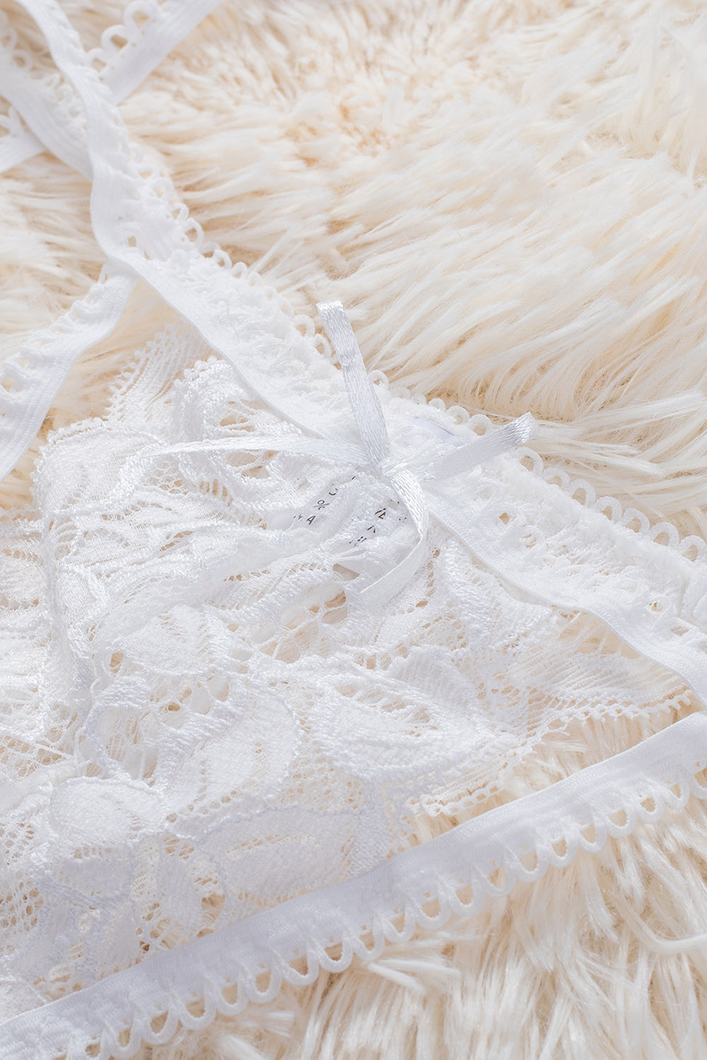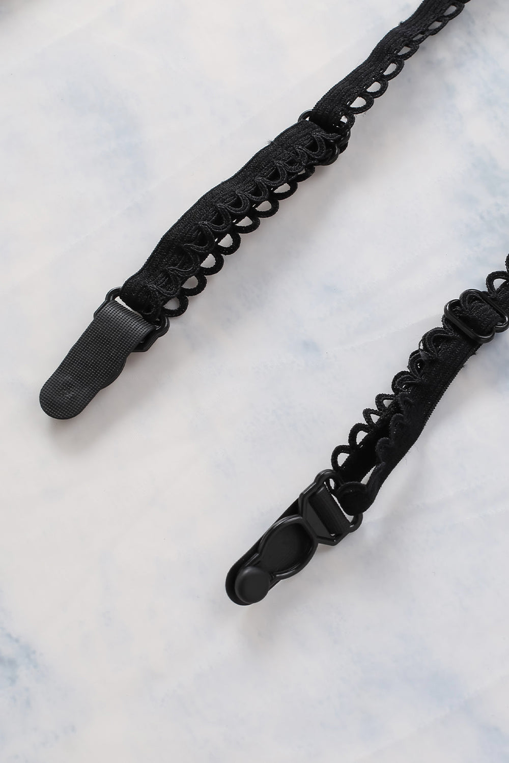 This 3Pcs Lace Patch Strappy Bra Thong Lingerie Set With Garter Belt is the perfect combination of sexy and sophisticated.