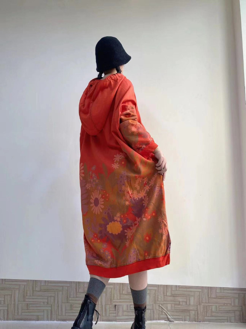 This dress is made of cotton material. so it's soft and comfortable to wear. The green and blue colors are very pretty. and the flower case pattern makes it unique. This dress would be perfect for autumn or winter.