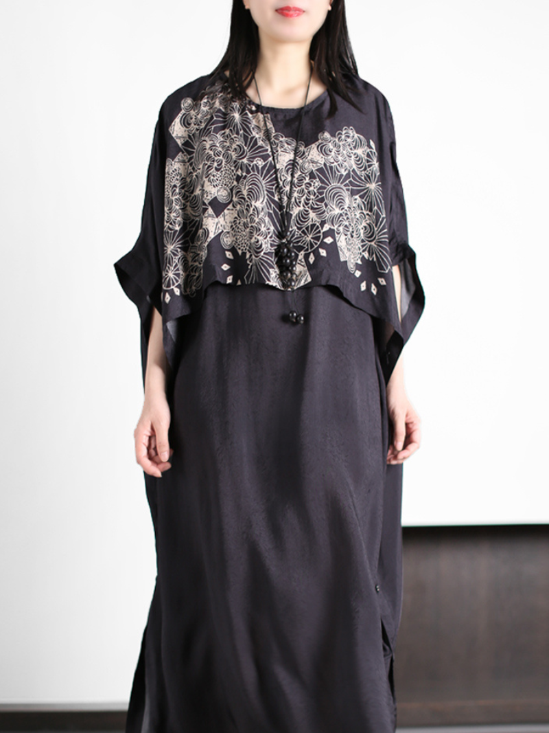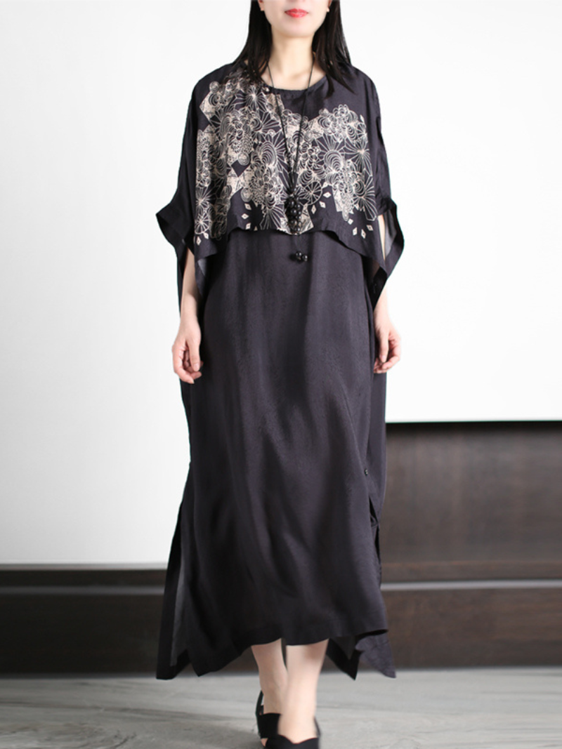 The women's loose round neck A-line dress is a chic and comfortable garment that is perfect for stylish and relaxed dressing. Made from high-quality rayon material. this dress is known for its softness and breathability. The loose A-line silhouette offers a relaxed and flowy fit. ensuring all-day comfort. The round neck adds a touch of simplicity and versatility to the design. making it easy to style for various occasions. The bat sleeves are a unique feature that adds a trendy and fashionable twist to the dress. providing a modern and stylish look. The black color adds a touch of sophistication and versatility to the outfit. making it suitable for both casual and semi-formal occasions. This women's loose round neck A-line dress is the perfect combination of comfort and style. making it a must-have in any fashion-conscious woman's wardrobe.