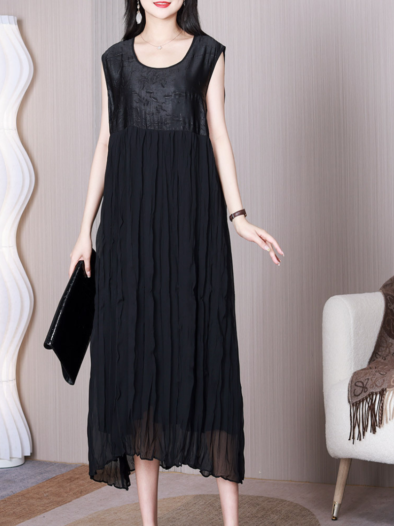 The "All You Need Women's Round Neck Middle Waist A-line Dress" is a timeless and versatile piece that combines comfort and style effortlessly. Crafted from a luxurious blend of 70% silk and 30% polyester. this dress offers a smooth and lustrous texture. ensuring both comfort and elegance.In a classic black color. this dress exudes sophistication and versatility. Black is a timeless hue that never goes out of style. making it suitable for a wide range of occasions and easily paired with various accessories and footwear.Featuring a round neckline. this dress offers a simple and timeless design. The round neck adds a touch of elegance and versatility. making it suitable for both casual and more formal events.Designed with a middle waist. this dress accentuates your natural curves and creates a well-defined silhouette. The middle waist provides a flattering shape and adds a sense of structure to the dress.