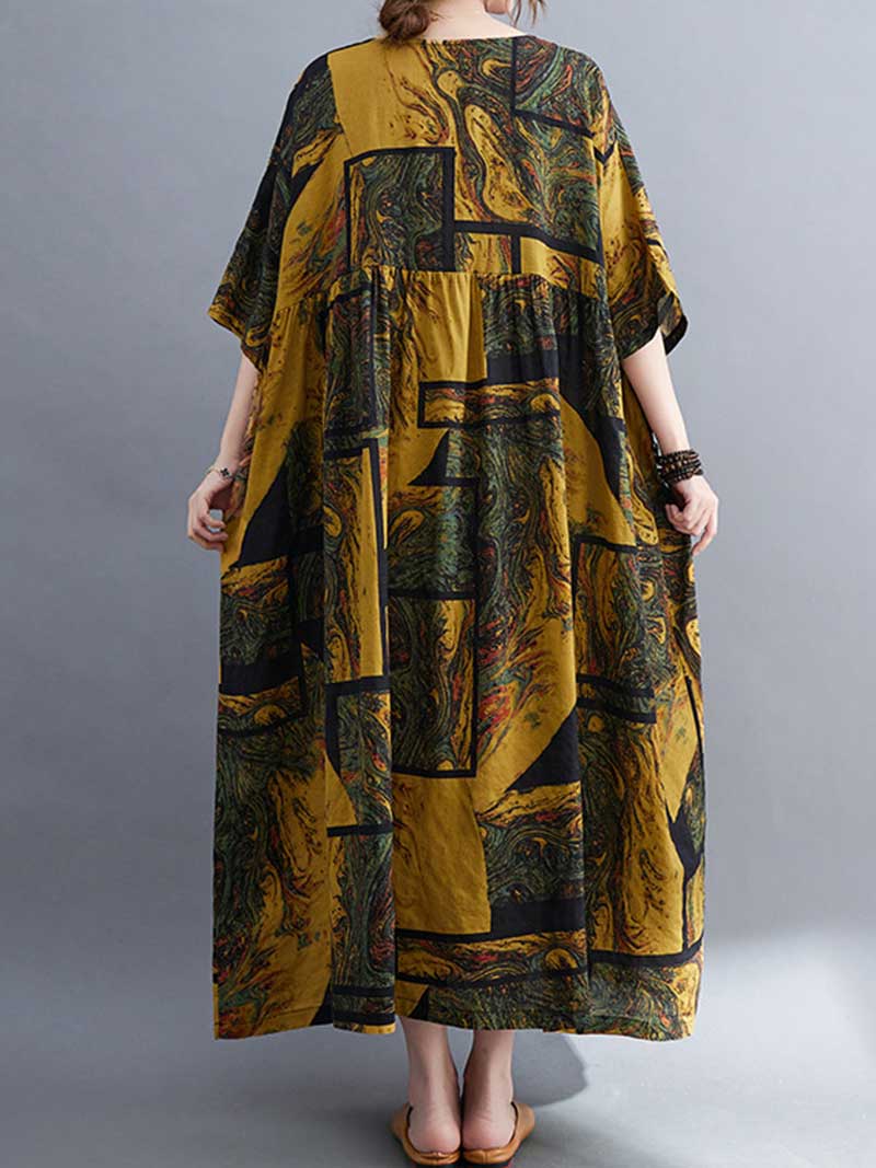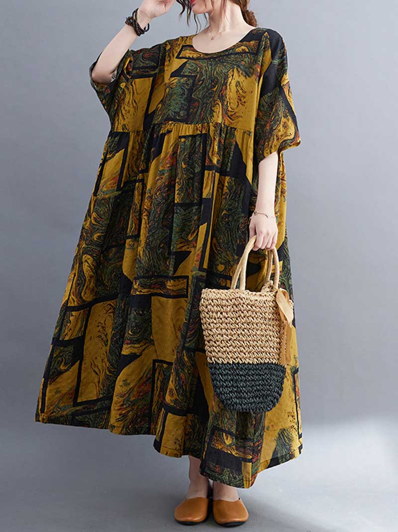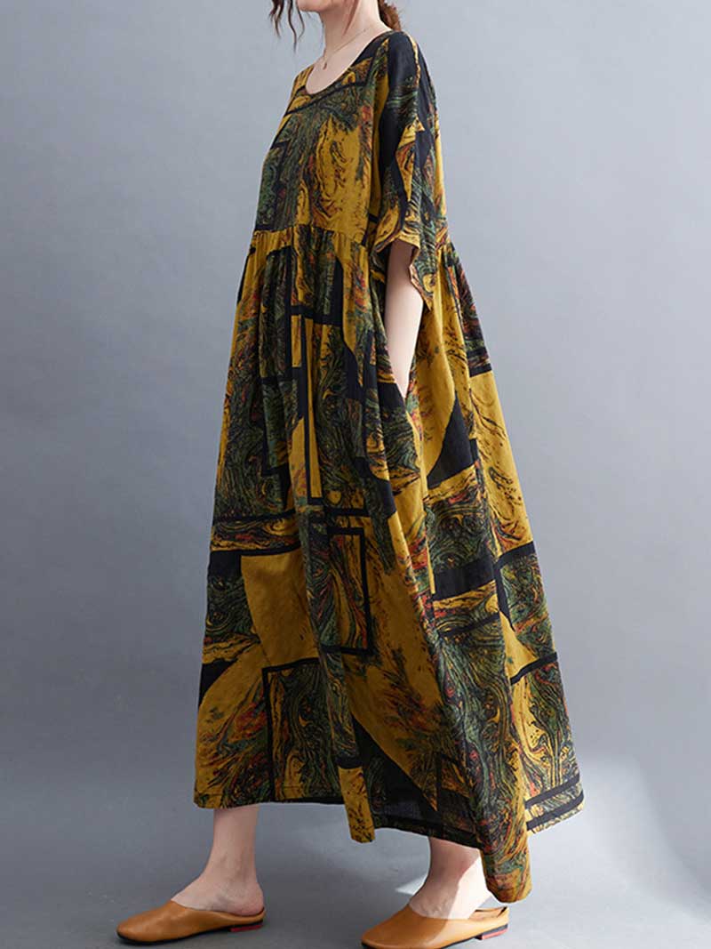 This Art Vibes Printed Smock Dress is perfect for the woman who wants to feel feminine and stylish. Made of cotton and with a loose-fitting design. it's perfect for summer. spring. or autumn weather. The pretty floral pattern will make you stand out from the crowd. and the short sleeves are just right for warmer days.