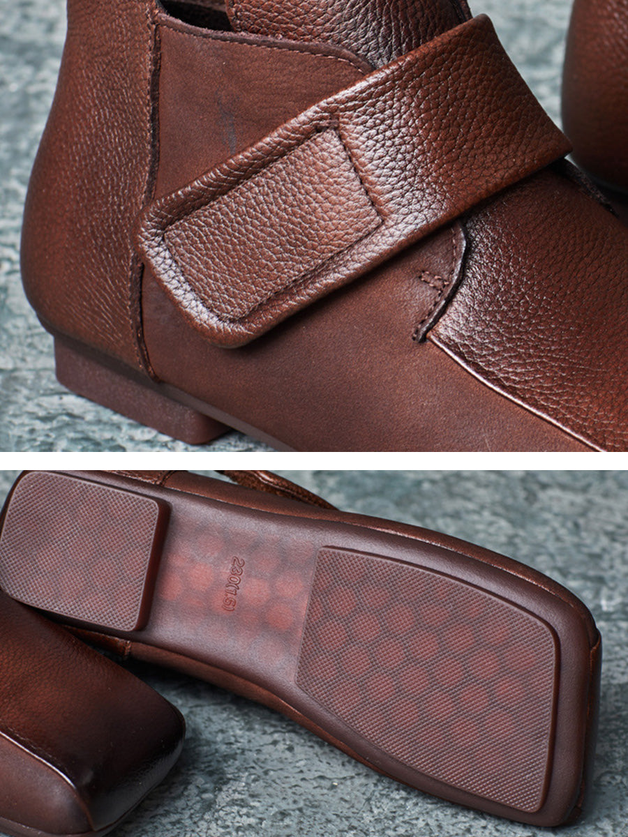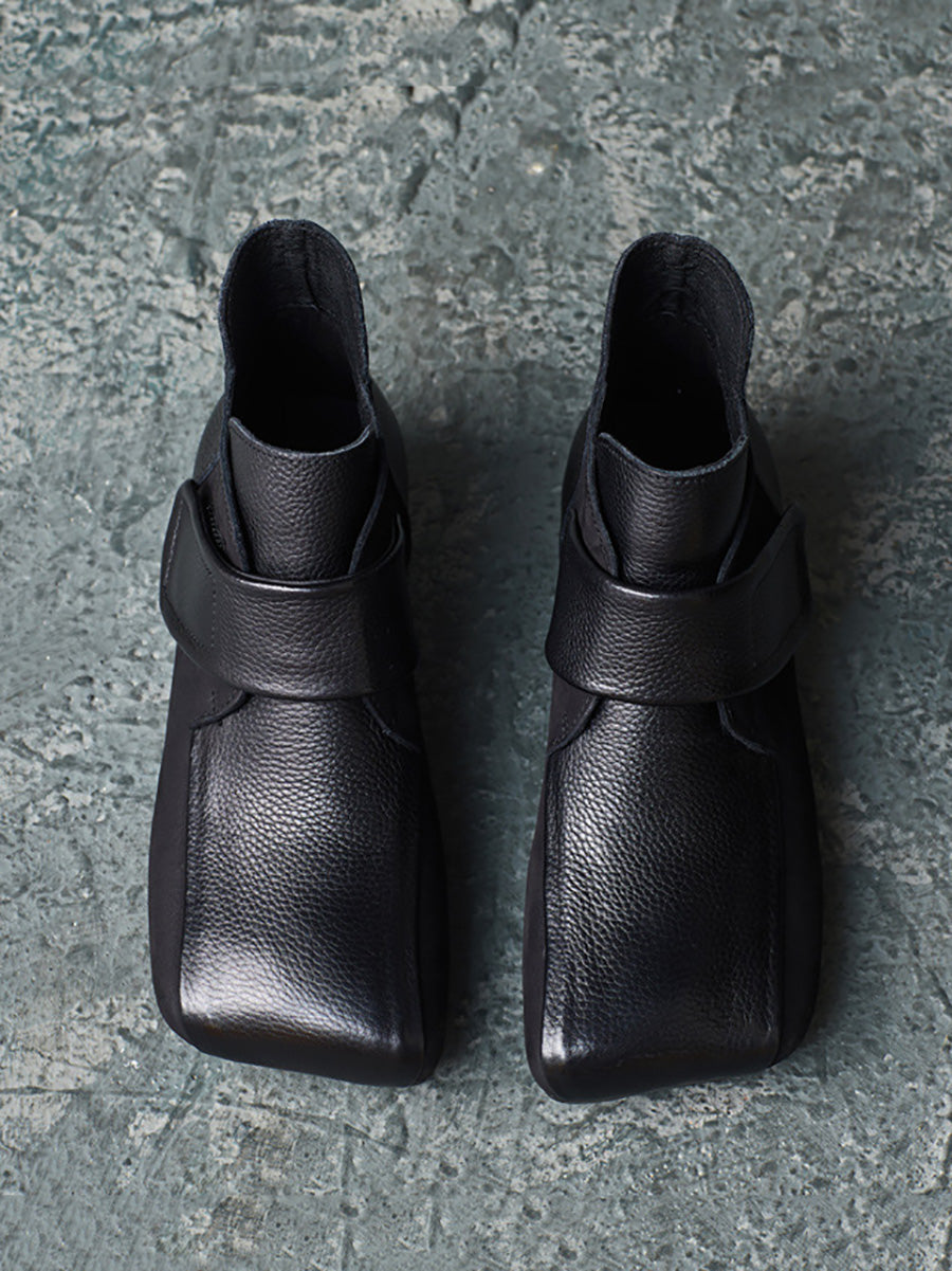 Indulge in the artful elegance of our Women Artsy Leather Spliced Square Collar Ankle Boots. Crafted from premium leather with a unique spliced design. these ankle boots exude sophistication and luxury. With a bold square collar and ankle height. they will elevate any outfit and make a statement.