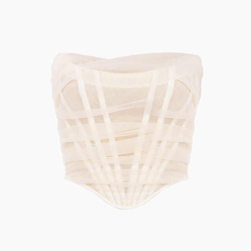 You will love this versatile corset top in spring and summer. Made of cotton blend and mesh fabric. stand out in ruching sheer mesh overlay for a romantic vibe. featuring a bandeau neckline with non-slip design. slim fit silhouette with seamed trim and exposed rear zip fastening. and asymmetrical hemline. Find more unique women's corsets or clothing in our boutique. and finish a trendy go-to look with matching jeans or pants.