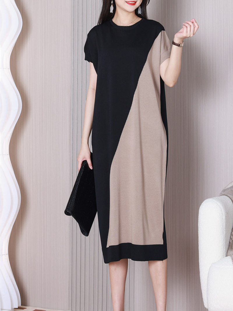 Dress up your routine in this stylish midi dress! Knitted hemp fabric makes this look amazing. Featuring a round neckline. short sleeves. and geometric pattern on the bottom half. this dress is sure to make you stand out in the office.You will have no problem walking around all day long in this dress without feeling hot or heavy on your skin.