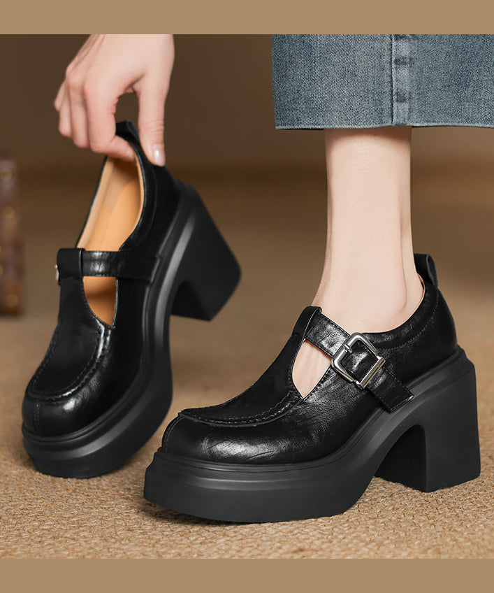 Experience luxury and sophistication with our Beige Sheepskin Chunky Heel Loafers for women. featuring a stunning splicing design and elegant buckle strap. Made from high-quality sheepskin. these heels exude exclusivity and taste.