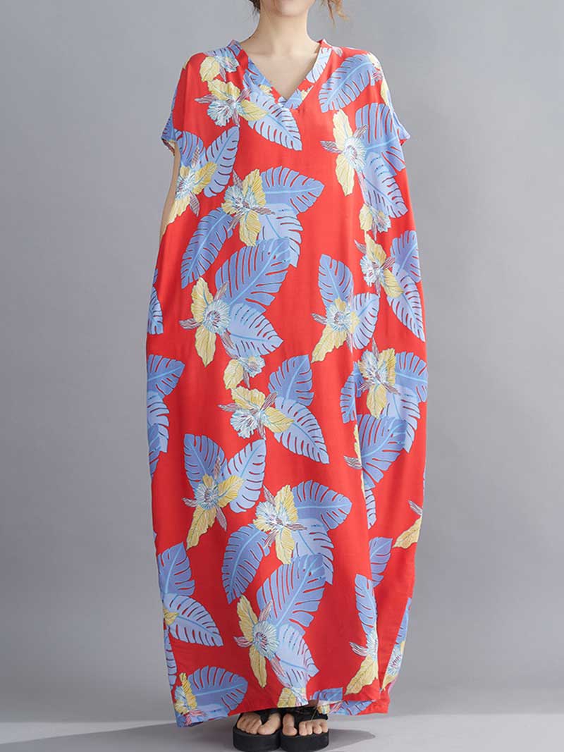 With its leaf-printed design and loose fit. this kaftan dress is the perfect way to let your inner free spirit run wild. It's made from rayon. so it's light and airy. perfect for hot summer days or balmy spring nights. Plus. the V-neck collar makes it a versatile piece that can be dressed up or down.