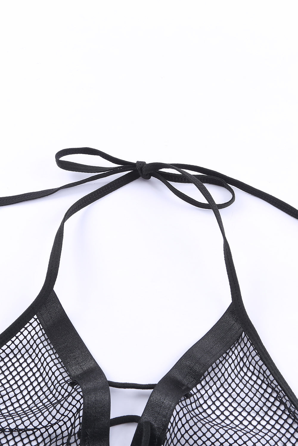Whether you're looking for something to wear for a special occasion or just want to add a little spice to your wardrobe. this Black Halter Backless Fishnet Lingerie Set With Shorts is the perfect choice.