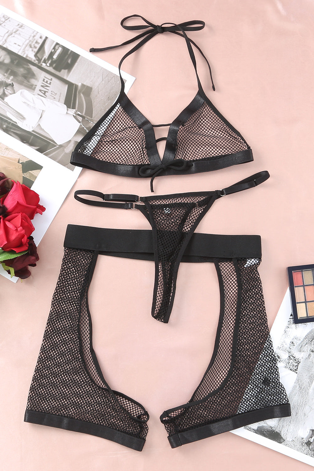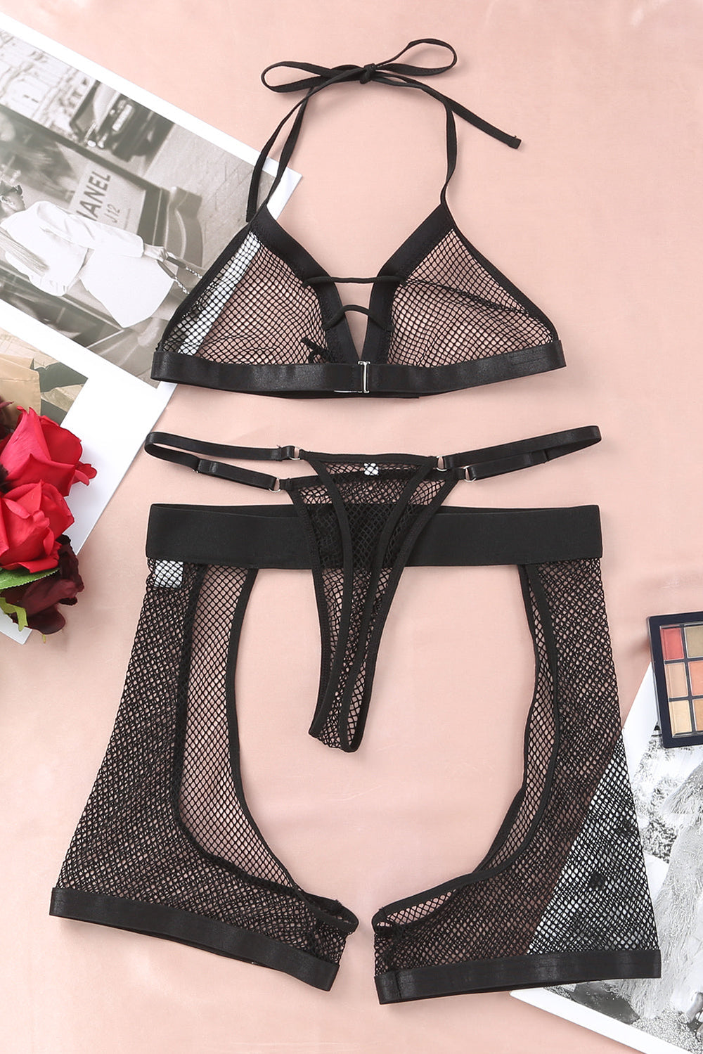 The halter neckline and backless design of this lingerie set will flatter your figure and make you feel sexy and confident.