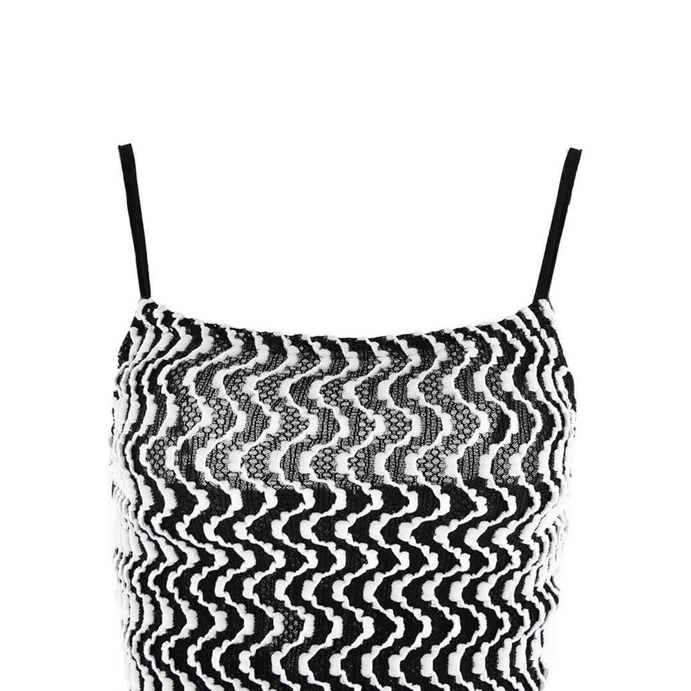 Make a statement on your next vacation with our stunning Bohemian style holiday dress. This sleeveless dress boasts a classic black and white contrast with beautiful wavy knit details that exude elegance and sophistication. The bodycon fit and adjustable spaghetti straps ensure a comfortable and flattering fit. while the side zipper adds a practical touch to the dress. Partially lined. this unique dress is semi-sheer due to the nature of the fabric. giving it a touch of allure. Perfect for any summer getaway. this trend dress is versatile and chic. making it an ideal addition to your vacation wardrobe. Whether you're strolling along the beach or exploring a new city. this slip dress will elevate your style to the next level.