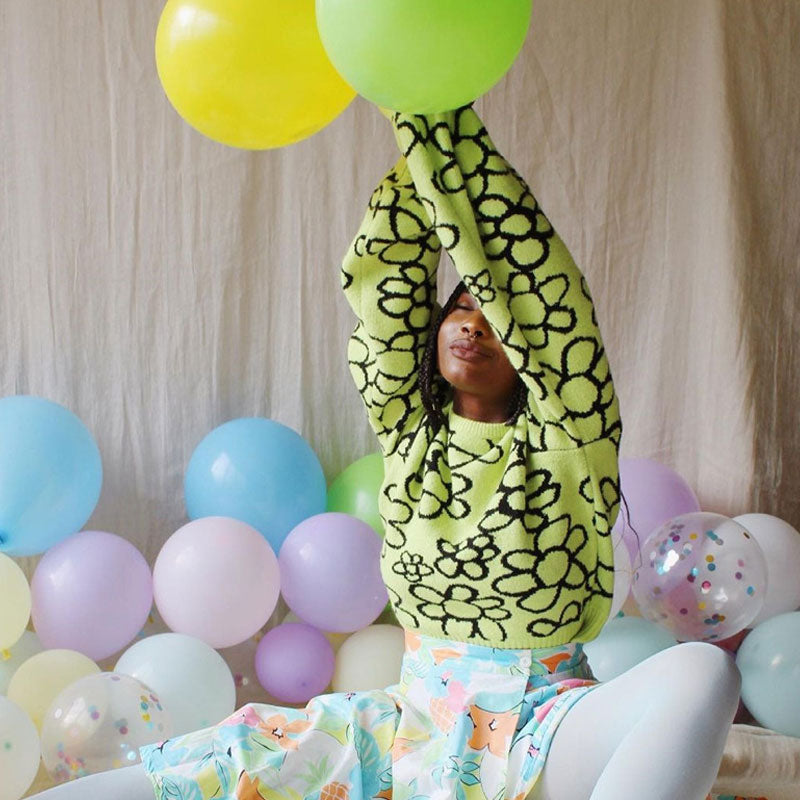 Needless to say. it's a real winner paired with your choice of this pullover sweater. Crafted with blend acrylic. embellished with contrasting carton flower patterns. featuring a round neckline. billowy long sleeves embodied with banded cuffs. a pullover styling outlined with ribbed trims. an oversized fit finished with a short length. Find more women's knitted sweaters or trendy clothing in our boutique. and wear it with a pair of rib-knit pants and high-heel ankle boots.