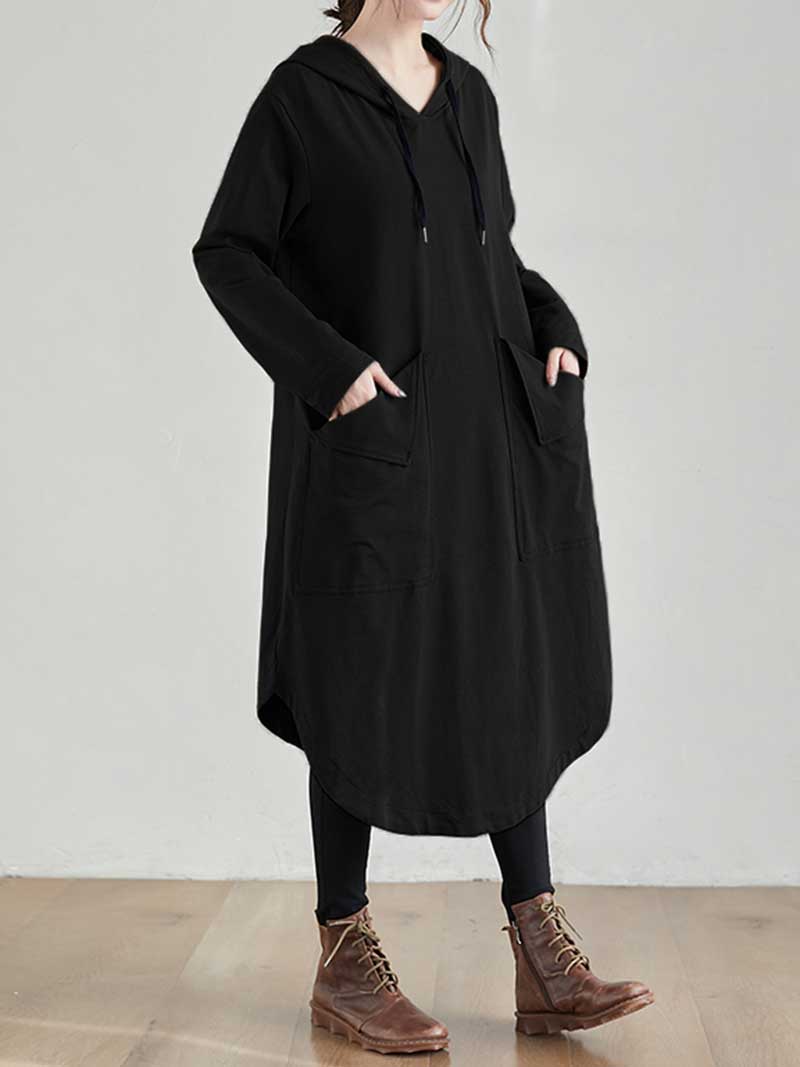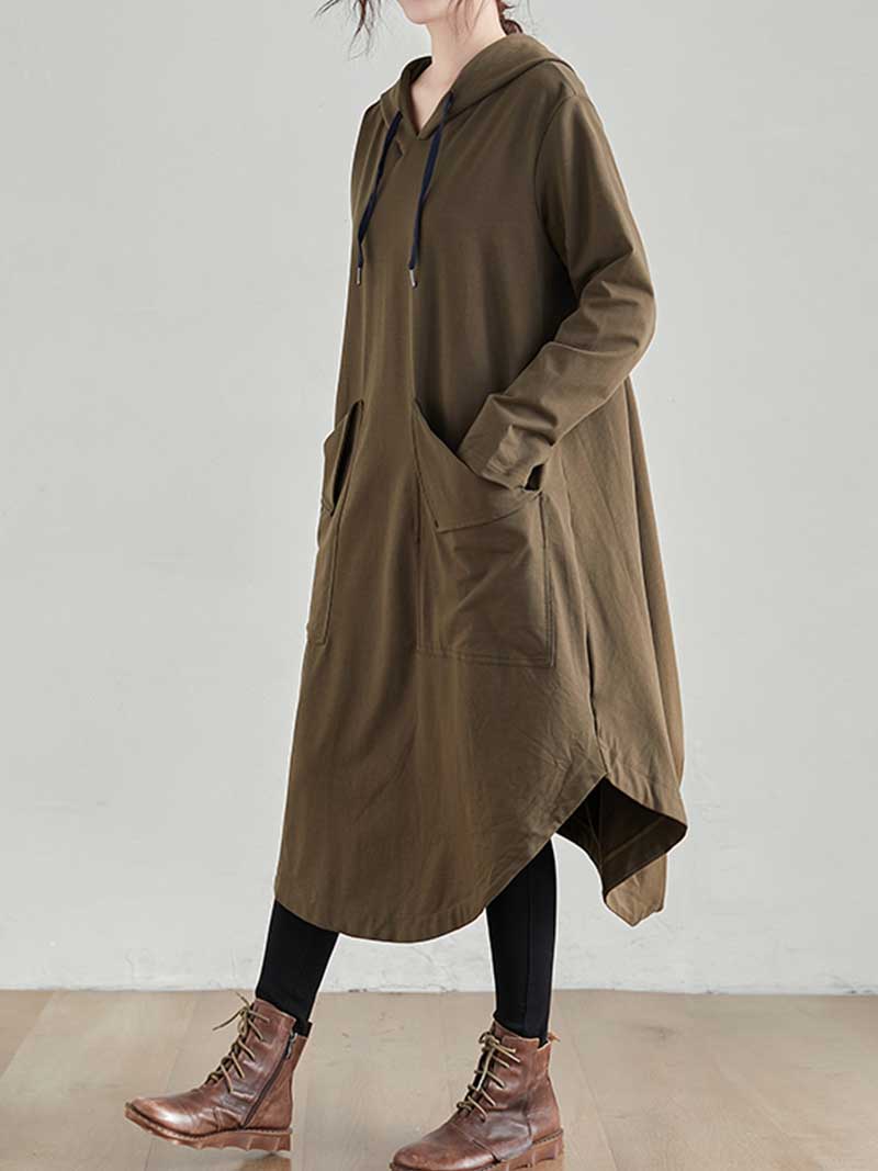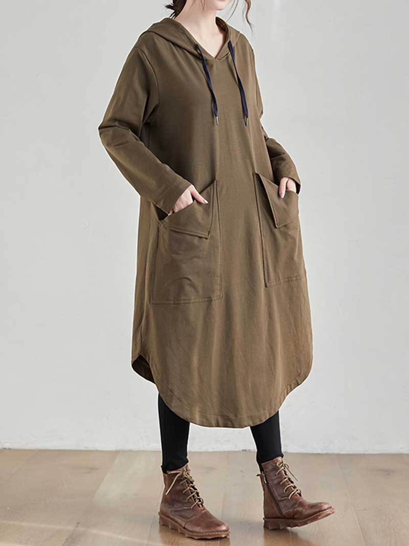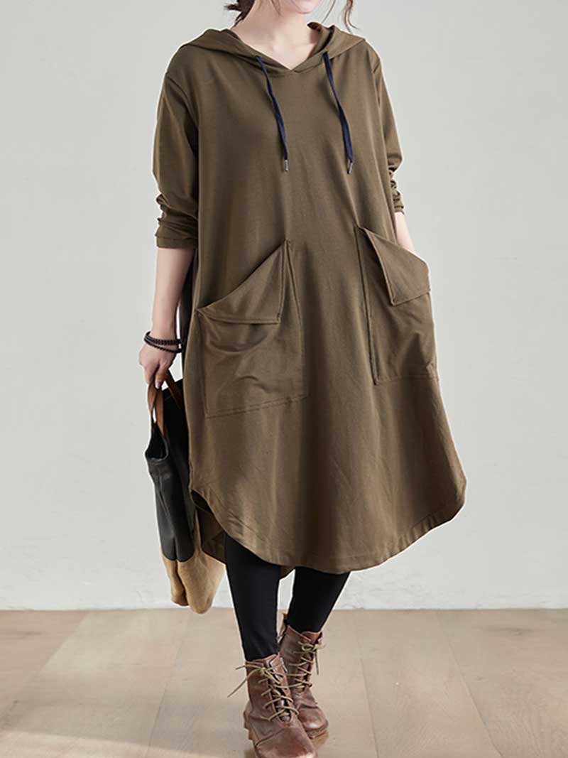 Our Bonjour Mi Amor Hooded Midi Dress is the perfect addition to your wardrobe for chilly autumn and winter days. Made of cotton. this dress is soft. comfortable. and stylish. The hooded neckline provides extra warmth and protection from the cold. while the loose waist allows you to flow free on breezy days. The long sleeve design keeps you covered on chillier days. while the black and khaki colors complement any outfit. Wear this dress with tall boots or sandals depending on the season. and feel confident and beautiful all day long.
