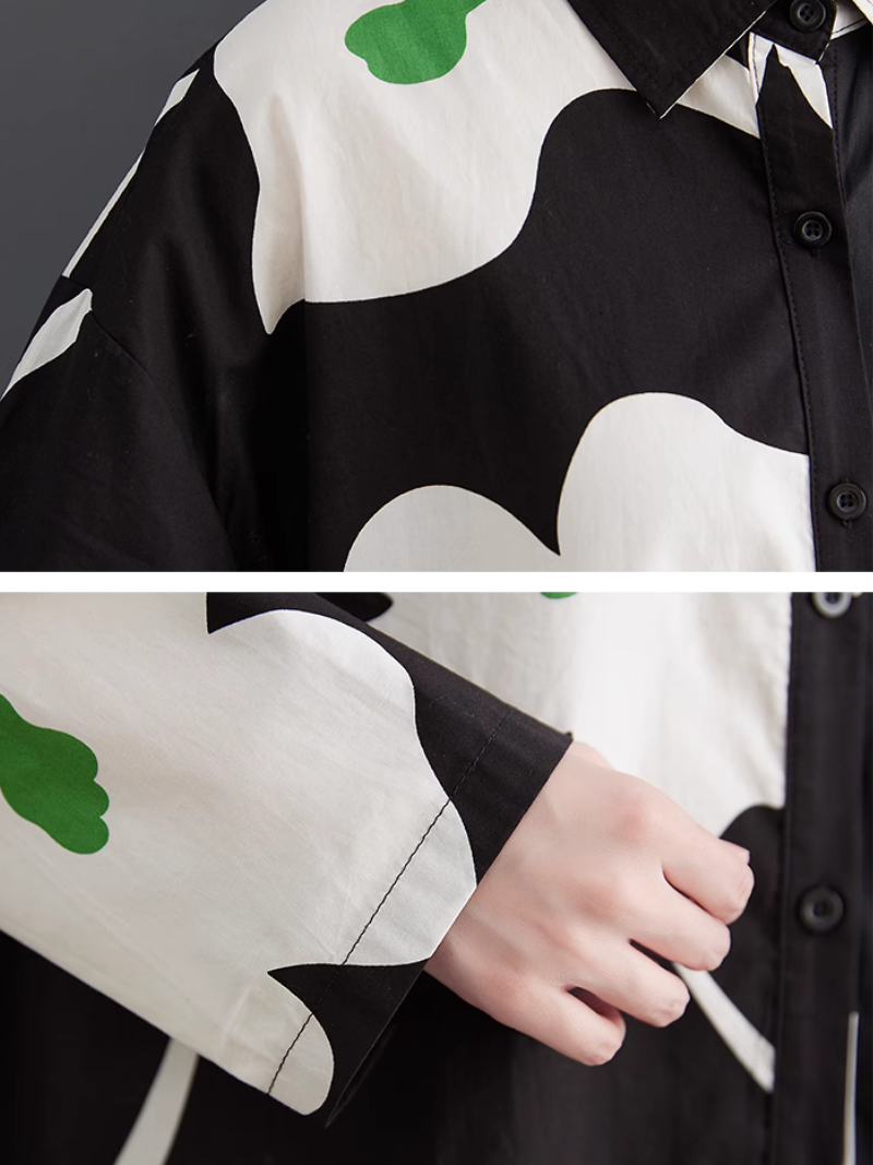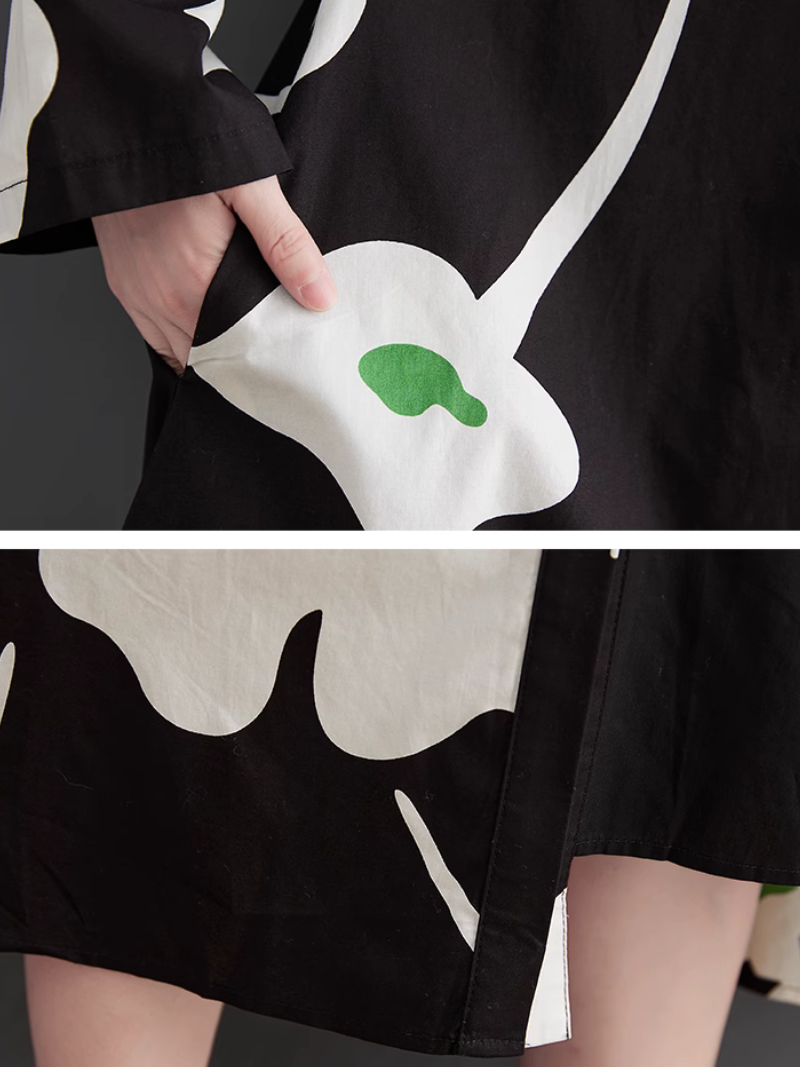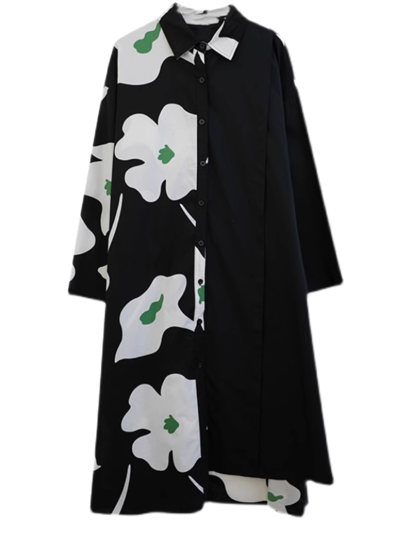 Women's Mid-Length Shirt A-Line Dress �a perfect fusion of comfort and style. Crafted from a blend of high-quality cotton. it embodies luxury and ease. Designed with shirt sleeves and a loose waist. it's the epitome of laid-back charm. The dress boasts a unique color pattern and features convenient side pockets. The collar adds a refined touch to its relaxed design. Available in a free size. the dress measures 116cm in length. with a bust of 122cm. sleeves of 50cm. and a shoulder width of 58cm. Elevate your casual fashion game with this effortlessly chic A-line dress.
