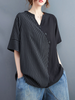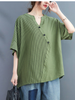 Stay stylish and comfortable with our Women's Button-Up Striped Tops. Crafted from soft and breathable cotton. these tops are perfect for any season. Available in classic white. timeless black. and refreshing green with trendy stripes. they add a touch of sophistication to your wardrobe. The V-neck design complements all body types. while the short sleeves offer a casual yet chic look. With a one-size-fits-all approach. the top's measurements include a length of 72cm. bust of 130cm. shoulder width of 50cm. and sleeves of 28cm. Elevate your fashion game effortlessly with these versatile and fashion-forward button-up tops.