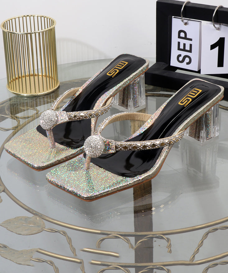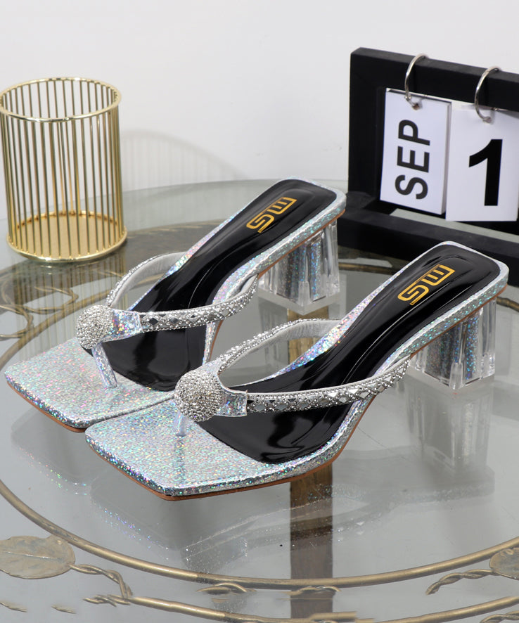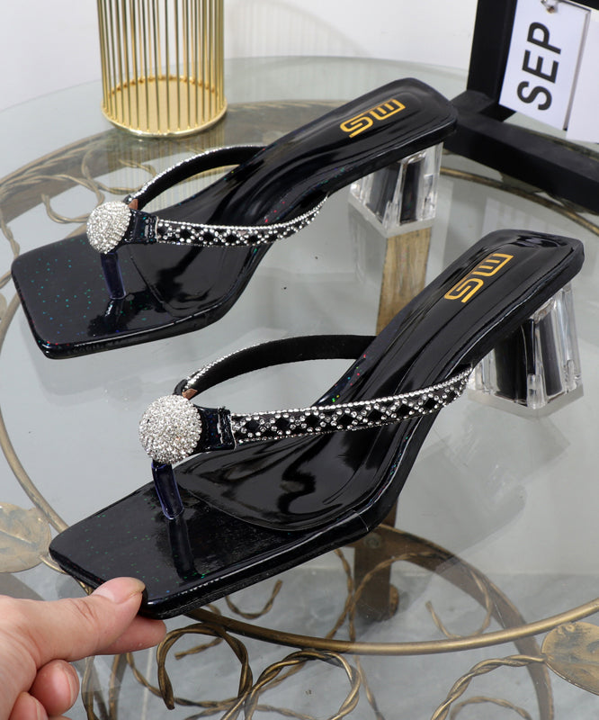 Expertly crafted with a chic blue faux leather material and a stunning zircon accent. these chunky heel flip flops are the perfect addition to any fashion-forward wardrobe.