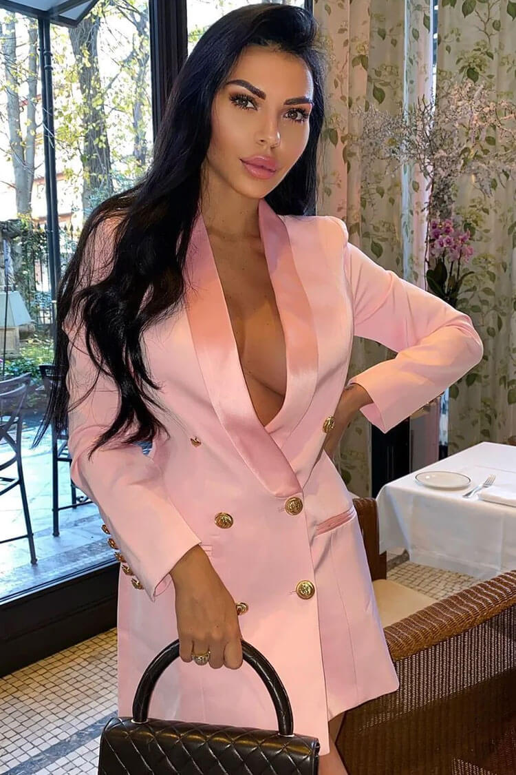 Elevate your classy style by donning on this two tone blazer mini dress. Made of heavy weight crepe fabric with satin trim. this chic work-to-party mini dress in our boutique features a shiny shawl neckline in contrast color. long sleeves. a double-breasted placket at front and functional side pockets to accentuate its slim fit shape. and a short dress cut in 32.29''. Love for its versatility. the breathtaking long sleeve mini dress is a must-have for women. which can be worn as a cocktail party dress or a dainty work outfit this season. A size up should be more comfortable due to its slim fit design.