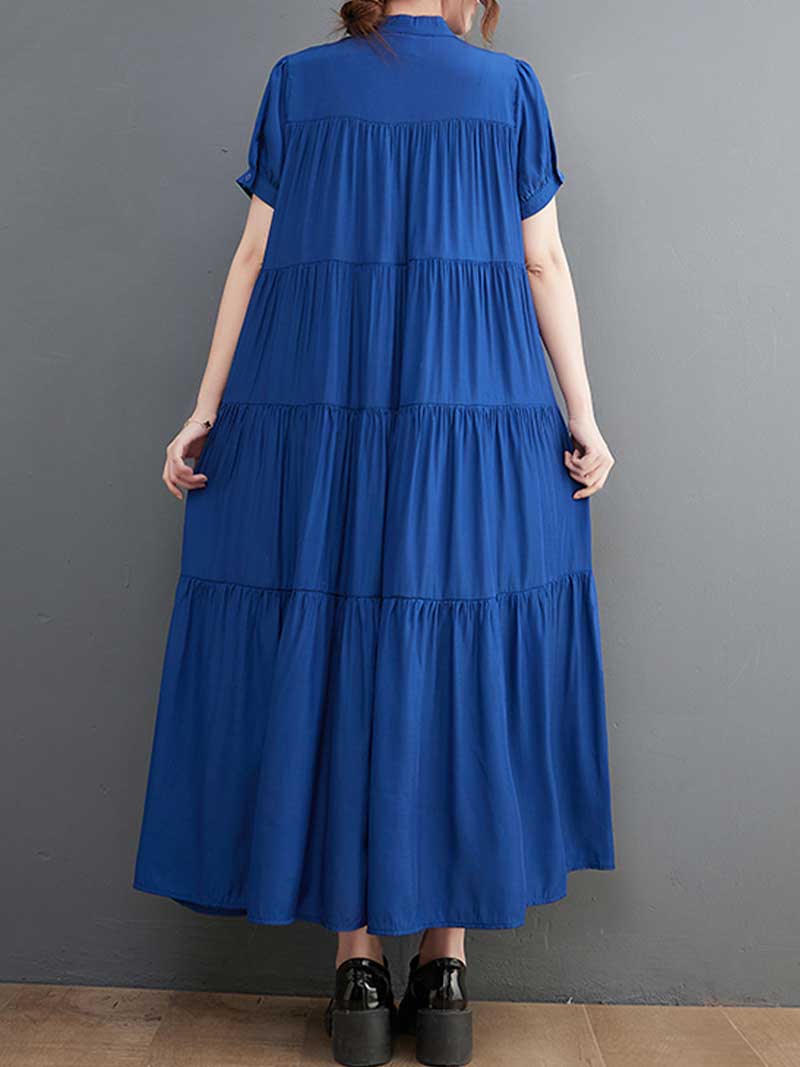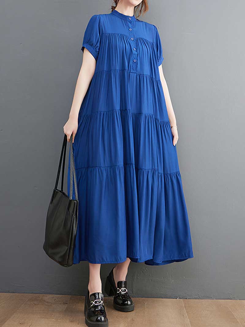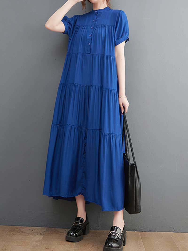 Looking for something light and airy for the summer months? This pretty blue A-line dress is perfect! Made from cotton. it's nice and cool to wear. plus the loose waist means you can move and breathe easily. The short sleeves are perfect for hot days. and the plain design means it's easy to accessorize. Add some sandals and a sunhat and you're ready for a day in the park or at the beach!