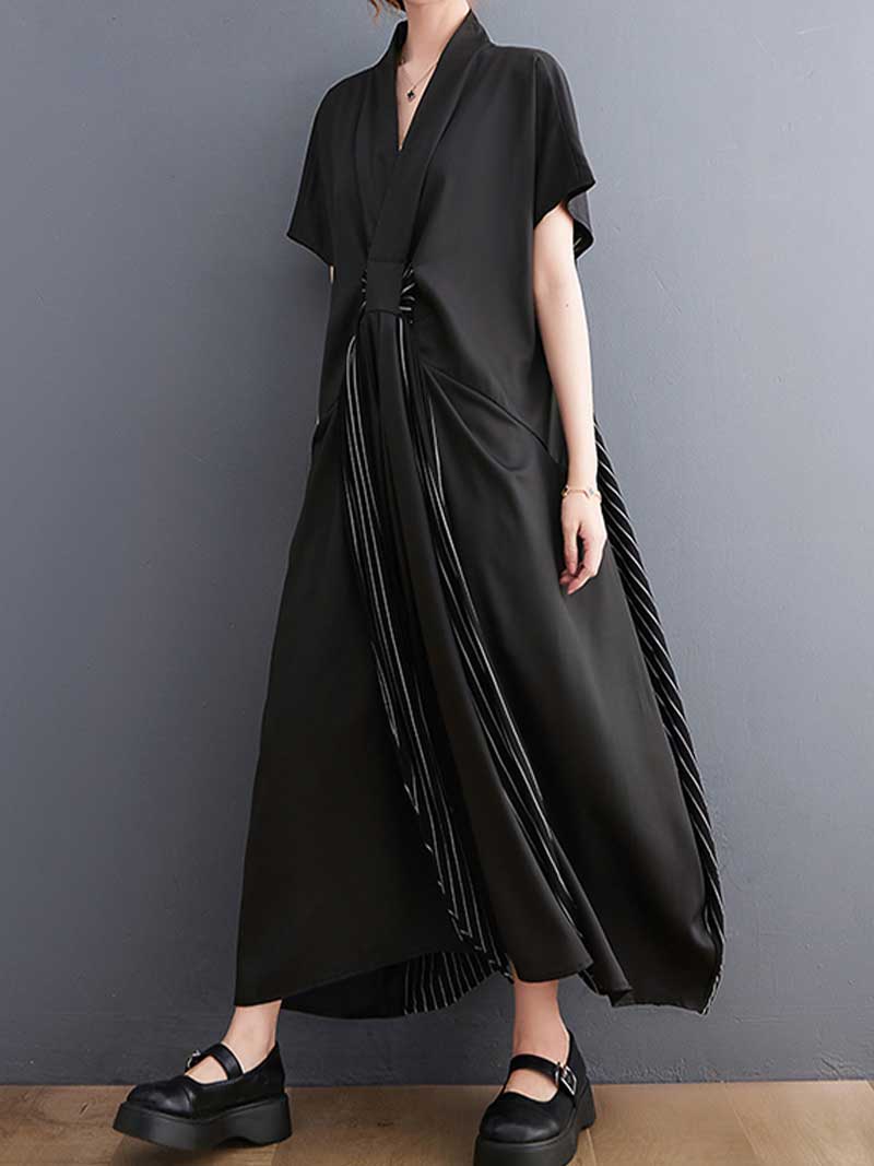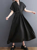 Check out our Cotton Short Sleeves Tie Style A-Line Dress! Made from soft and breathable cotton material. this dress is perfect for hot summer days. It features a V-neckline. short sleeves. and a flattering A-line silhouette. The waist is slightly cinched in the middle to create a beautiful hourglass shape. The black color is versatile and can be dressed up.