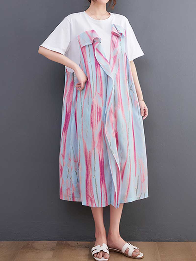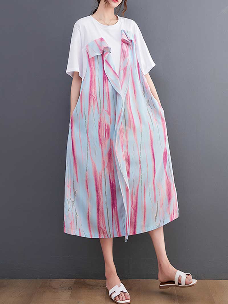 Our Cotton Tie-Dye Print Short Sleeves Midi Dress is perfect for you! Made from lightweight cotton. it's perfect for those hot summer days. The loose waist and short sleeves make it comfortable to wear. the multicolor print means you can wear it with just about anything. So go ahead and expresses yourself with our Cotton Tie-Dye Print Short Sleeves Midi Dress!
