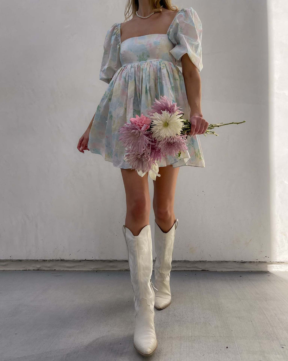 Babydoll smock dresses are the perfect finishing touch for a comfy yet cool outfit. This puff sleeve square neck babydoll mini dress in our boutique is a breezier option in summer. Featuring a square neckline in easy pull-on styling. short puff sleeves with elasticated cuffs. a high rise waistline with ruched trim. an A-line skirt silhouette with lining and a hidden zip closure in one side. this pure color mini linen dress brings a fresh. sweet feel to a classic summer dresses with a cute shape for women in sunny days. Pair it with casual sandals or slides for a complete chic look!
