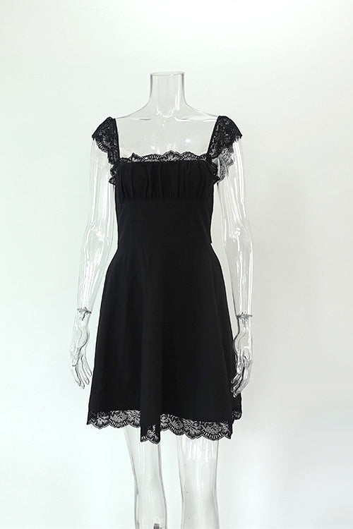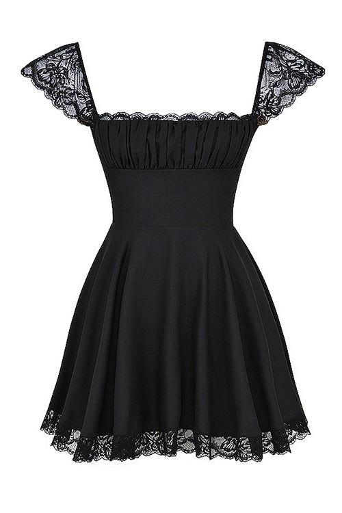 Have you found your black dresses for the upcoming spring summer parties? This simple little black dress in our boutique is sure to be a sunny-day favorite. Completed with a square neckline with ruched detailing at the chest. dainty scalloped lace trims on the neckline. cap sleeves and the hemline that add extra feminine. a fit-and-flare silhouette with a hidden zip closure and a lace-up closure at back. and a swingy short dress cut. this breezy sun dress will make women feel cute and sophisticated all season long. Style it with strappy heels for a chic LBD look.