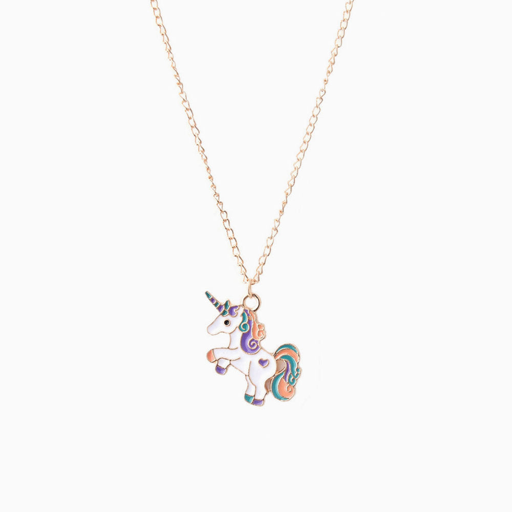 Add a fun touch to your look with this pendant necklace. Crafted with gold plated alloy. stand out in a playful unicorn pendant on the center front presented in multicolored color. featuring a chain-link styling along with an adjustable fit and finished with a spring-ring fastening. Find more unique women's necklaces and trendy jewelry in our boutique. and layer it with our accessories for a playful look.