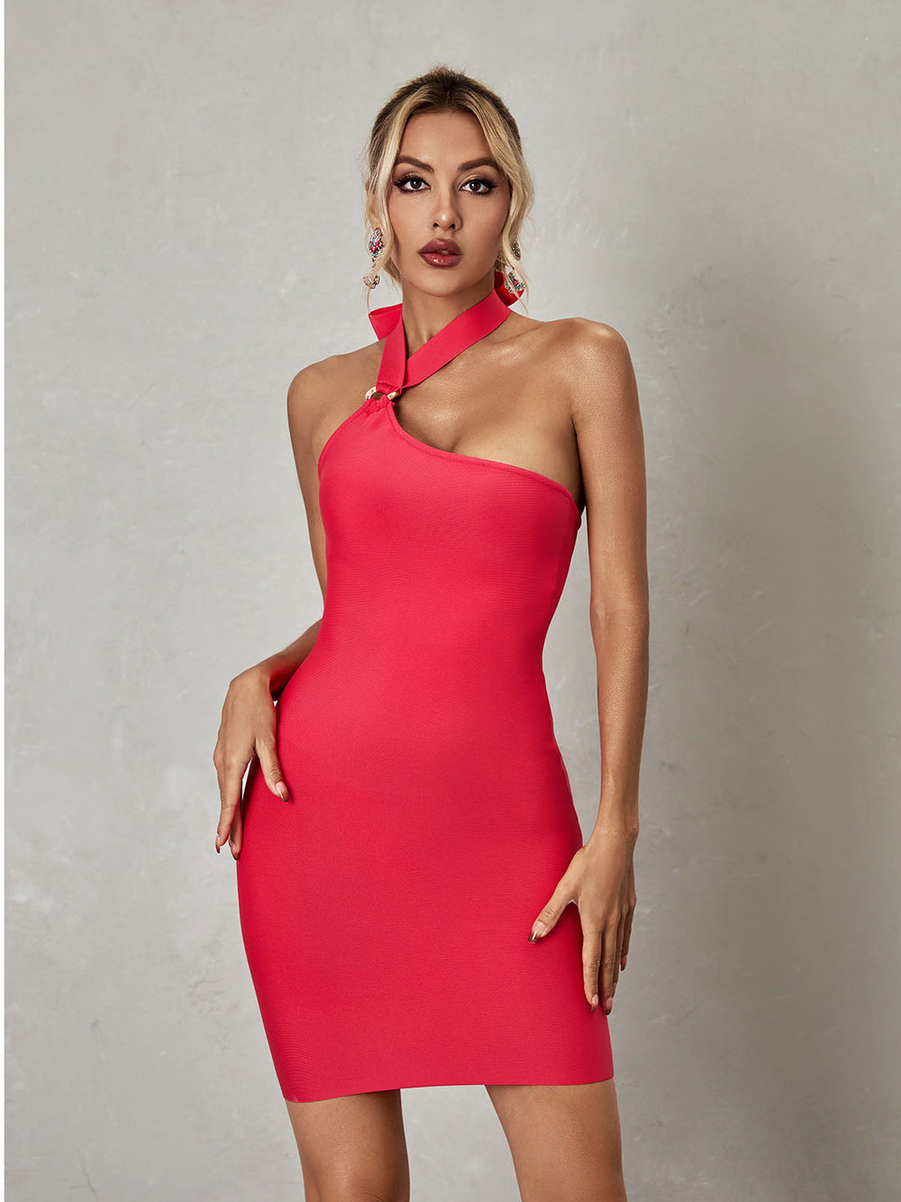 Bring the heat in this vibrant. off-shoulder mini dress. Crafted from a halterneck bandage. this Deka Halterneck Bandage Mini Dress is designed to hug and flatter your figure. Available in a bold hot pink. this piece is sure to make a statement.