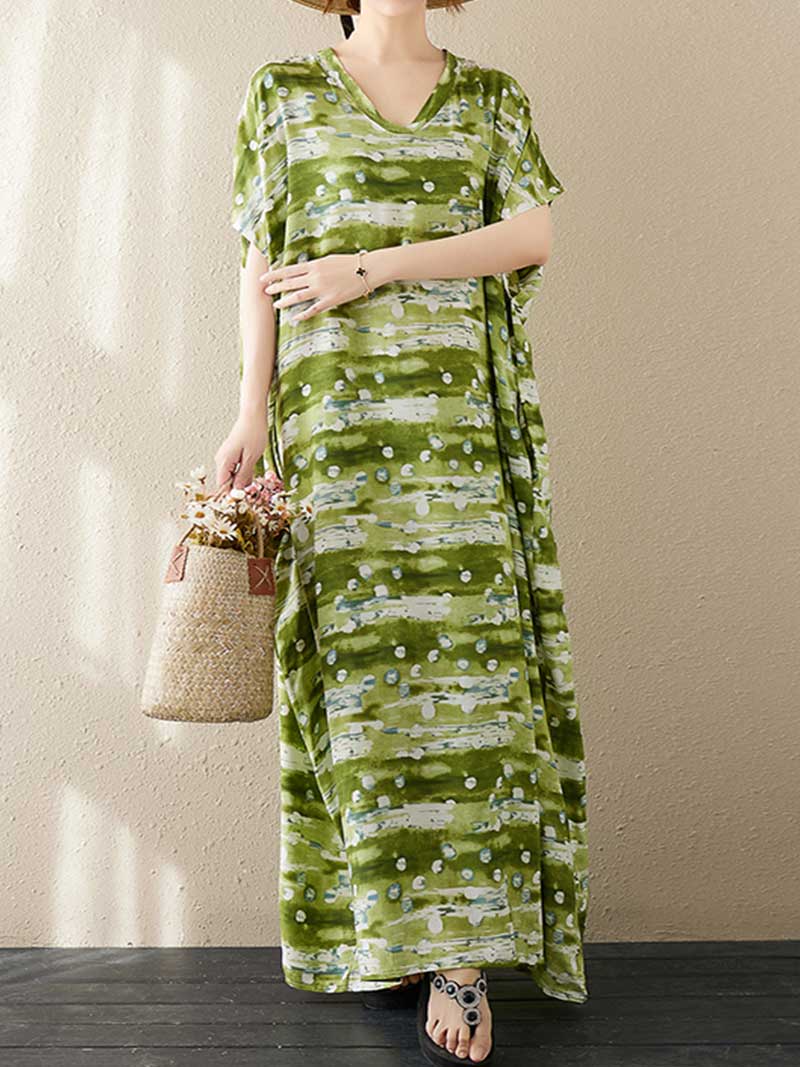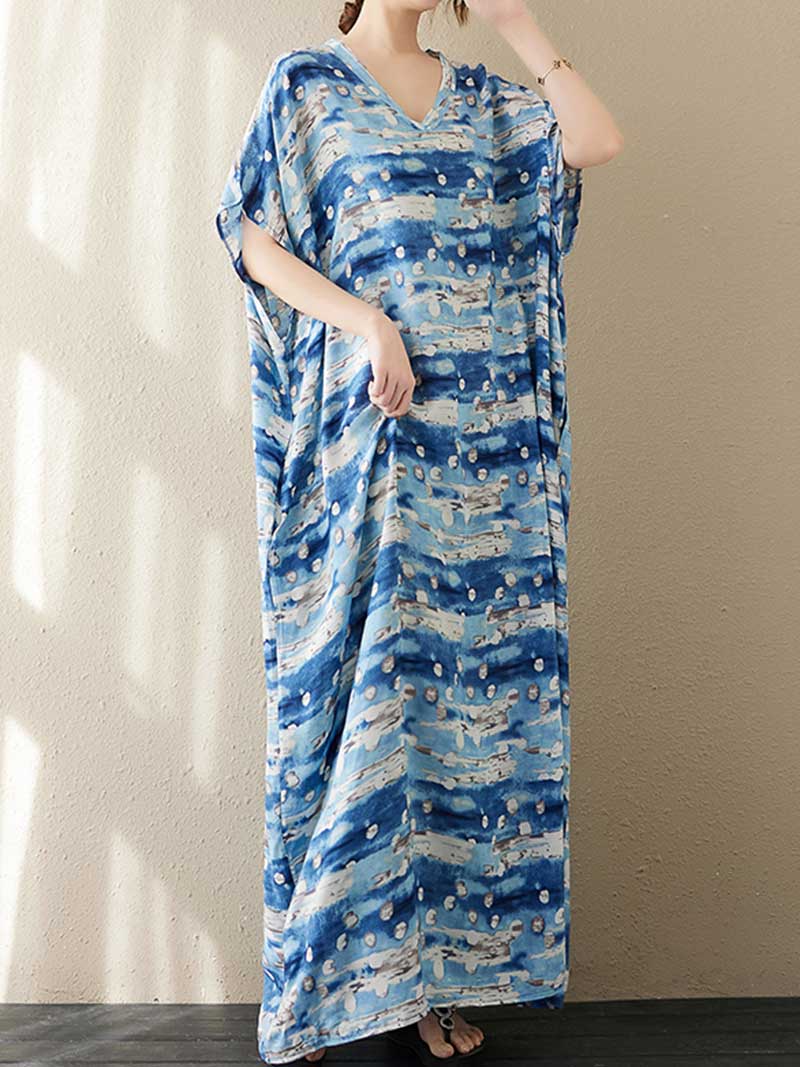 Looking for a versatile piece that can take you from the beach to the bar? Look no further than our tie-dye kaftan dress! Made of soft and lightweight cotton. this dress is perfect for summer days or warm autumn evenings. With a flattering v-neckline and loose waistband. it's both comfortable and stylish. And don't worry �it comes with a lining to keep you covered up when you need it. Plus. it comes in two beautiful colors: blue and green. So grab one today. and be ready for whatever the day throws your way!