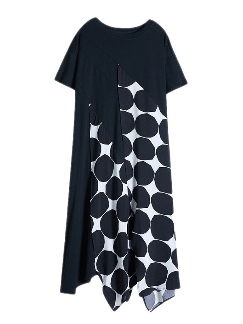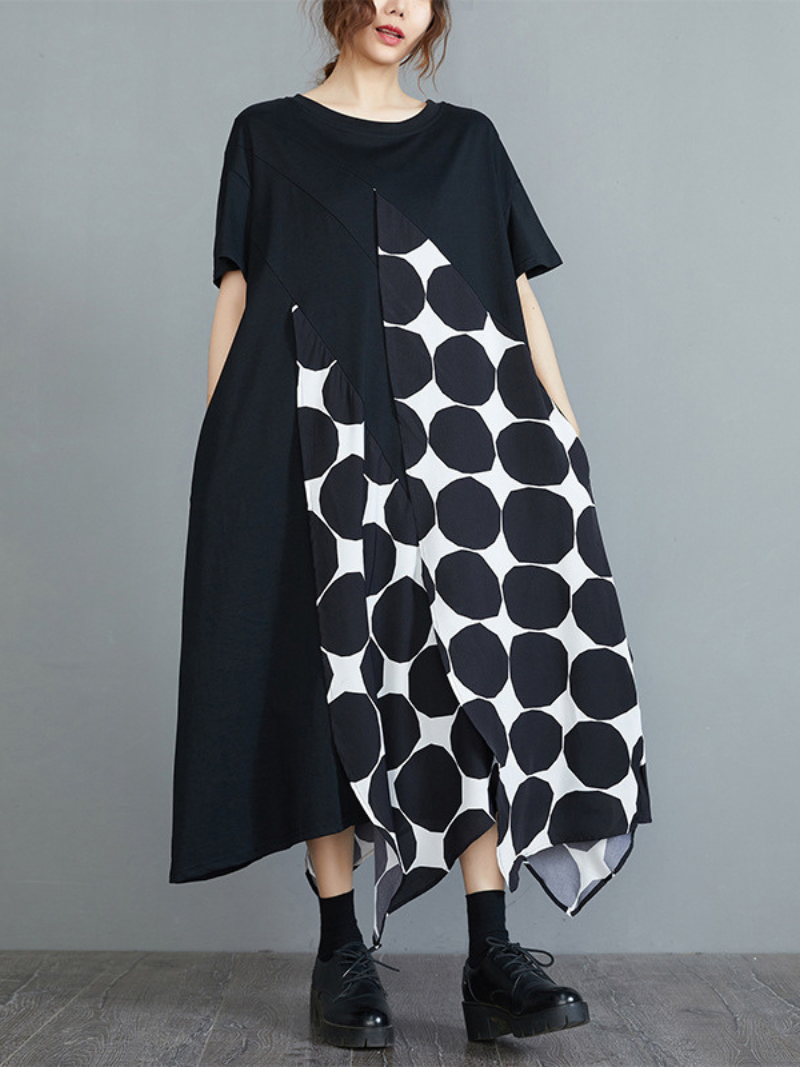 A women's stylish loose short sleeves A-line dress is a comfortable and versatile garment that features a loose-fitting silhouette with short sleeves and an A-line skirt. This type of dress typically falls above the knee and is designed to flatter a range of body shapes and sizes. It is made from soft and breathable fabric that drapes beautifully and offers maximum comfort. The loose fit of the dress allows for easy movement and creates a relaxed and casual look. Women's stylish loose short sleeves A-line dresses can be dressed up or down with the right accessories. making them a great option for a variety of occasions. from casual outings to more formal events.
