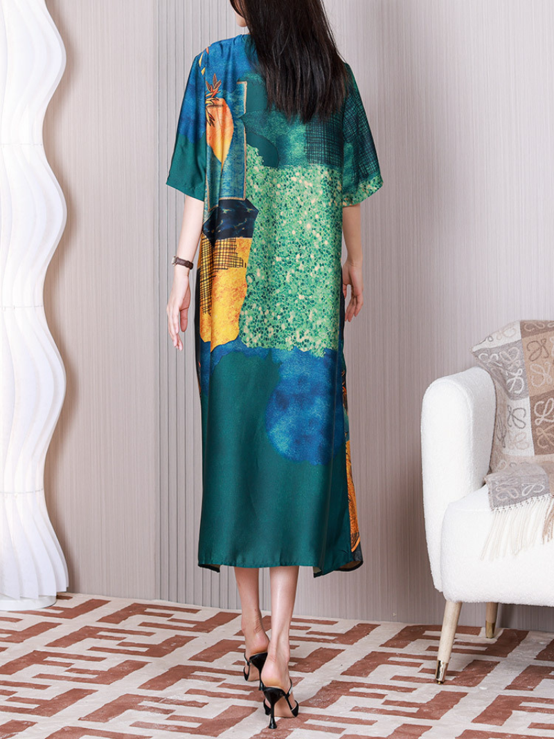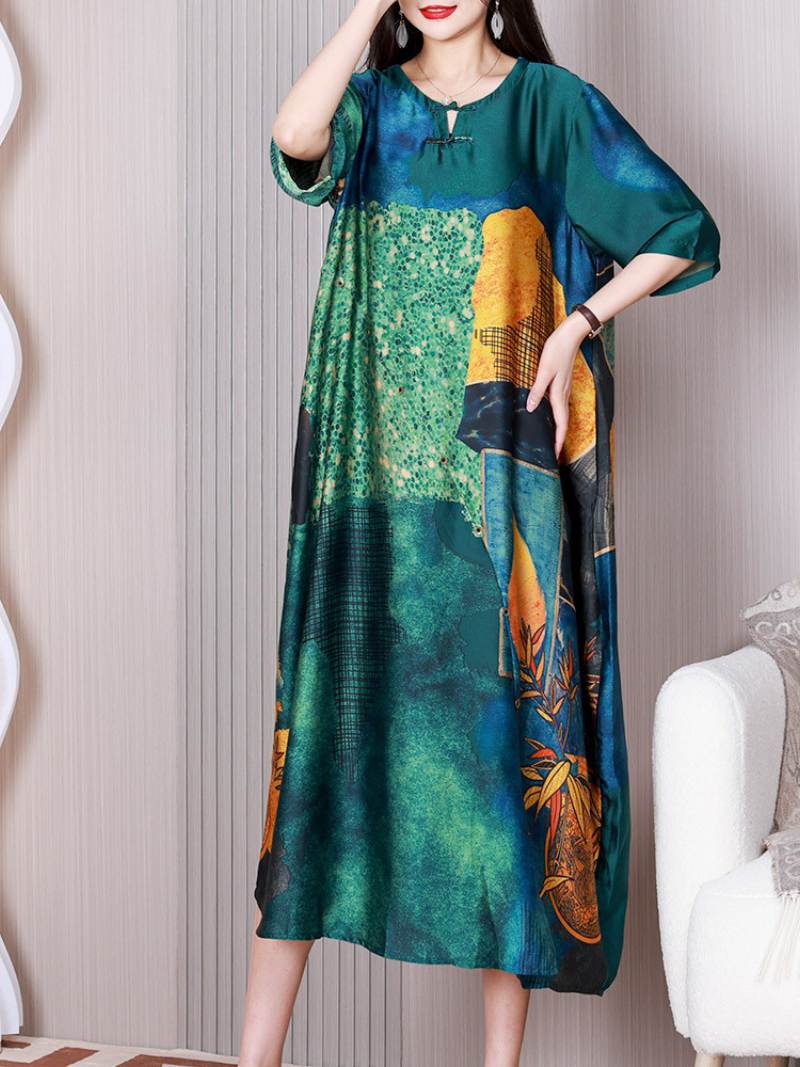 The Women's Round Neck short sleeves A-line Dress is a versatile and stylish dress that features a round neckline and short sleeves. The dress has a fitted top that flares out into an A-line skirt. creating a flattering silhouette that is comfortable to wear.The middle waist design of the dress accentuates the wearer's waistline. creating a visually pleasing hourglass figure. With its simple yet elegant design. the Women's Round Neck short sleeves middle waist A-line Dress is a wardrobe staple that can be dressed up or down with accessories to suit any occasion.Making it appropriate for a range of occasions. from casual outings to more formal events.
