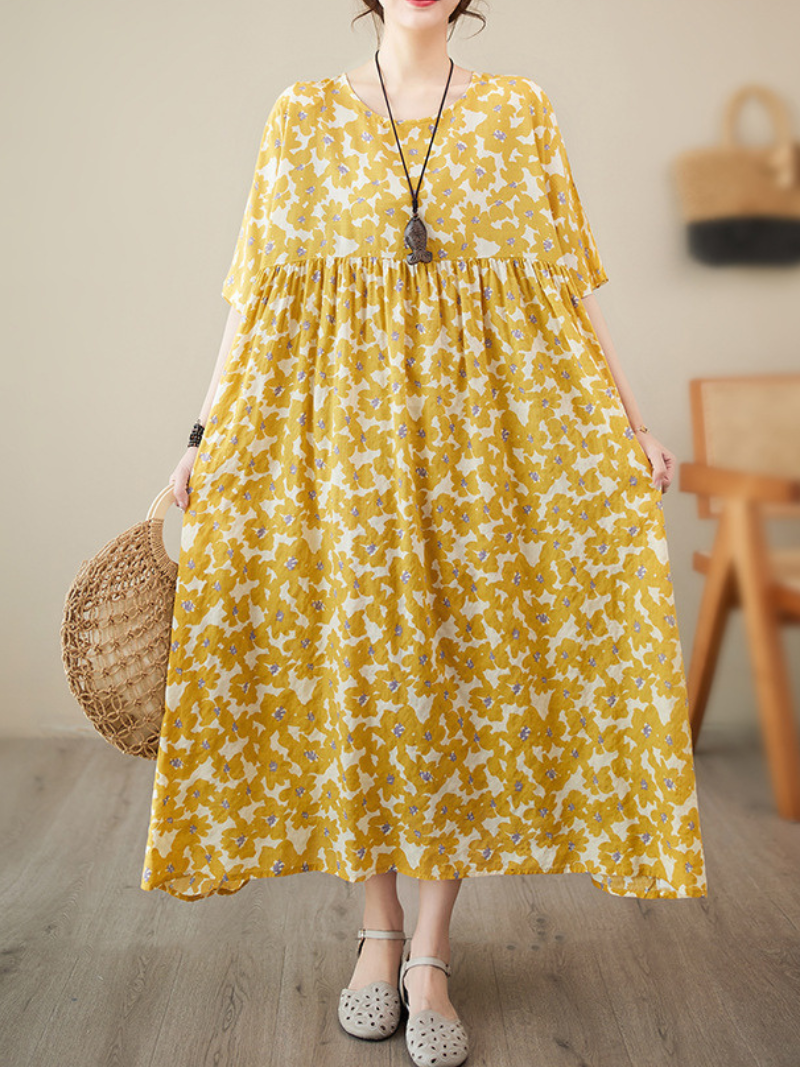 The Drop a Picture Women's Cotton Round Neck Smock Dress is a stylish and comfortable dress that is perfect for any casual occasion. Made from high-quality cotton material. this dress is soft. breathable. and gentle on the skin.Featuring a beautiful yellow color. this dress adds a pop of vibrant color to any outfit. The round neck design is both classic and elegant. while the loose waist and smock style offer a relaxed and comfortable fit. The short sleeves are perfect for keeping cool on warm days and allow for easy layering.This dress is perfect for a range of body types. as the loose fit allows for easy movement and comfort. Whether you're running errands or hanging out with friends