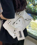 This versatile red tote handbag. made of elegant sheepskin and adorned with decorative rivets. exudes luxury and sophistication. The perfect choice for those seeking a refined and exclusive accessory.