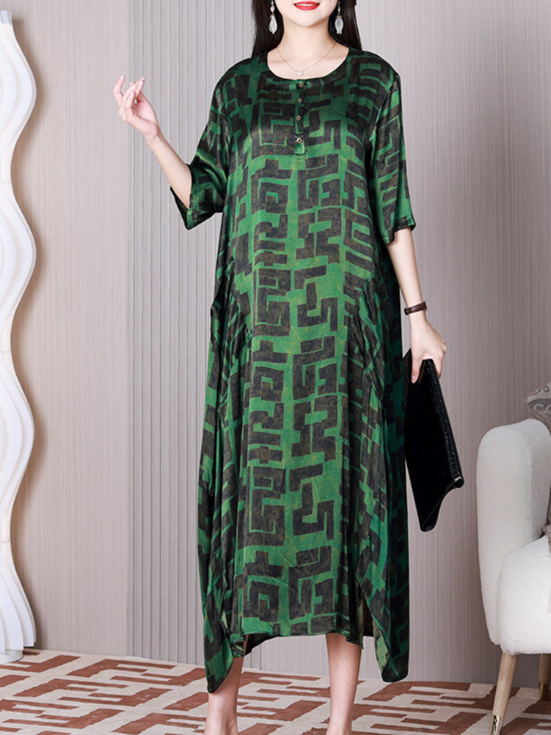 A Women's Round Neck middle waist A-line Dress is a versatile and feminine dress that features a round neckline and an A-line skirt that flares out from the waist. creating a flattering silhouette. It has yellow and green color variation.This style of dress typically hits at or just above the knee. making it appropriate for a wide range of occasions. from casual outings to more formal events. The middle waist design of the dress accentuates the wearer's waistline. creating a visually pleasing hourglass figure. With its simple yet elegant design. the Women's Round Neck middle waist A-line Dress is a classic wardrobe staple that can be dressed up or down to suit any occasion.