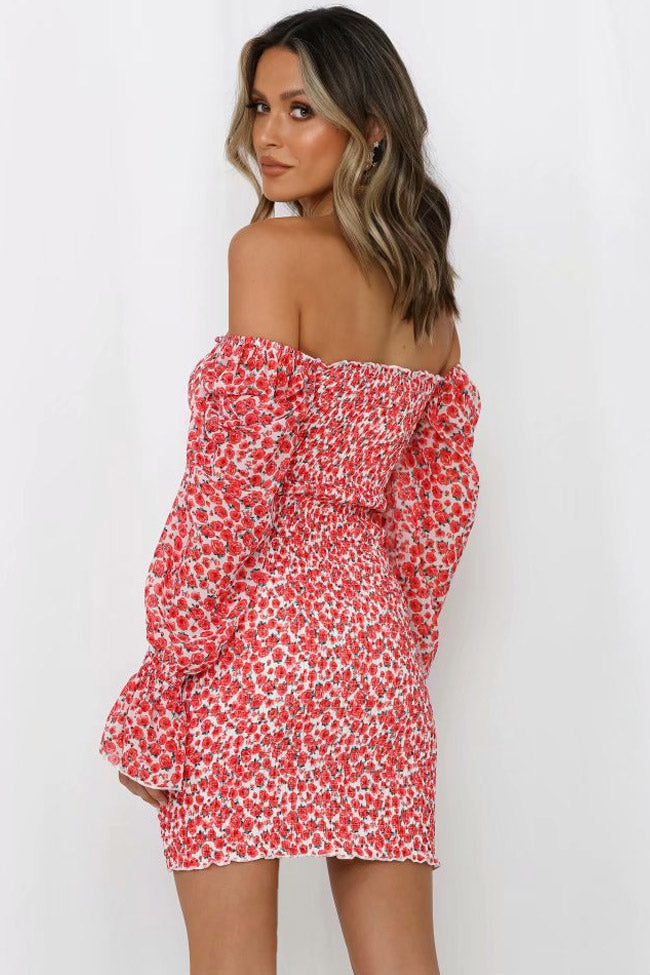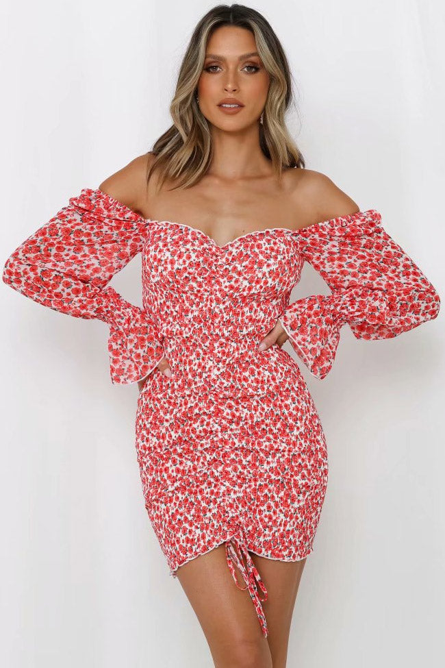 Free up your shoulders with bodycon mini dresses for women. You look so in this floral off shoulder ruched bodycon smocked mini dress. Featuring a off-the-shoulder sweetheart neck in pullover styling. long sleeves with smocked trim and flared cuffs. body-con crinkled silhouette with drawstring tie at hem. tiny flowers all-over. and a short dress cut with flounce edge. this eye-catching mini dress in our boutique is suited for day-to-night parties. Match it with stilettos and sparkling earrings to finish a charming outfit.