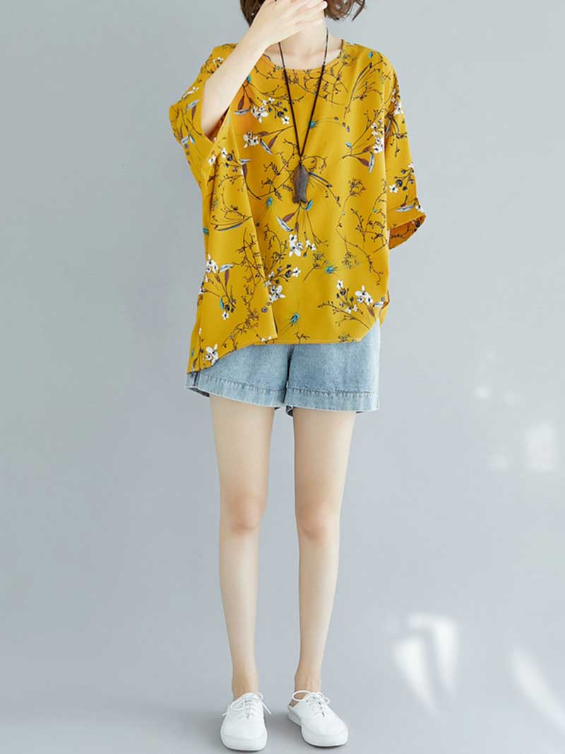 This Game of Love Printed Shirt Top is the perfect addition to your wardrobe this season! Made from Polyester and a round neck collar. it offers a comfortable and relaxed fit. The bat sleeves add a touch of whimsy to this top. while the all-over floral print makes it look feminine and stylish. It's available in several different colors. so you can choose the one that best suits your style. Whether you're dressing up or dressing down. this top is sure to complement your look perfectly!