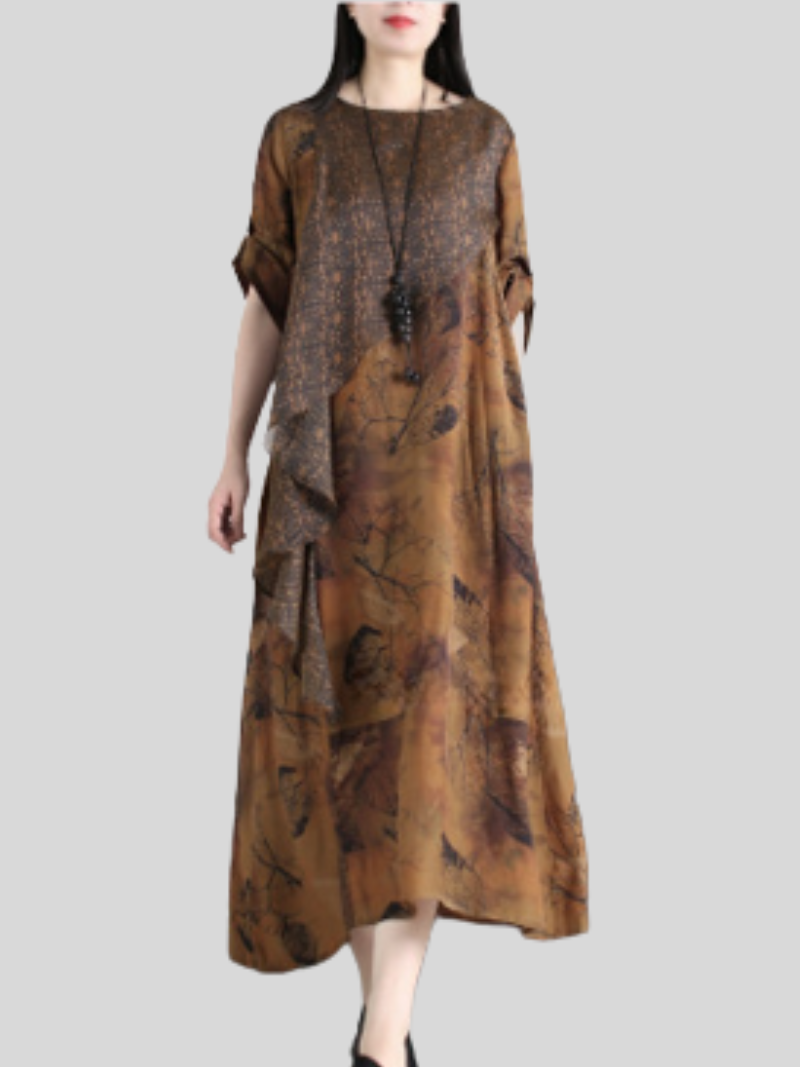 Elevate your style with this stunning A-line dress that features a luxurious blend of rayon and Mulberry silk. The soft and smooth fabric offers a comfortable and lightweight feel. making it perfect for all-day wear. The multi-color design adds a vibrant and eye-catching element to the dress. making it a statement piece for any occasion. The round neck adds a classic touch to the design. while the loose waist provides a relaxed and comfortable fit. The A-line silhouette offers a flattering and feminine shape that enhances the curves while providing freedom of movement. The commuter style of this dress makes it versatile for various settings. whether you're dressing up for work or running errands around town.