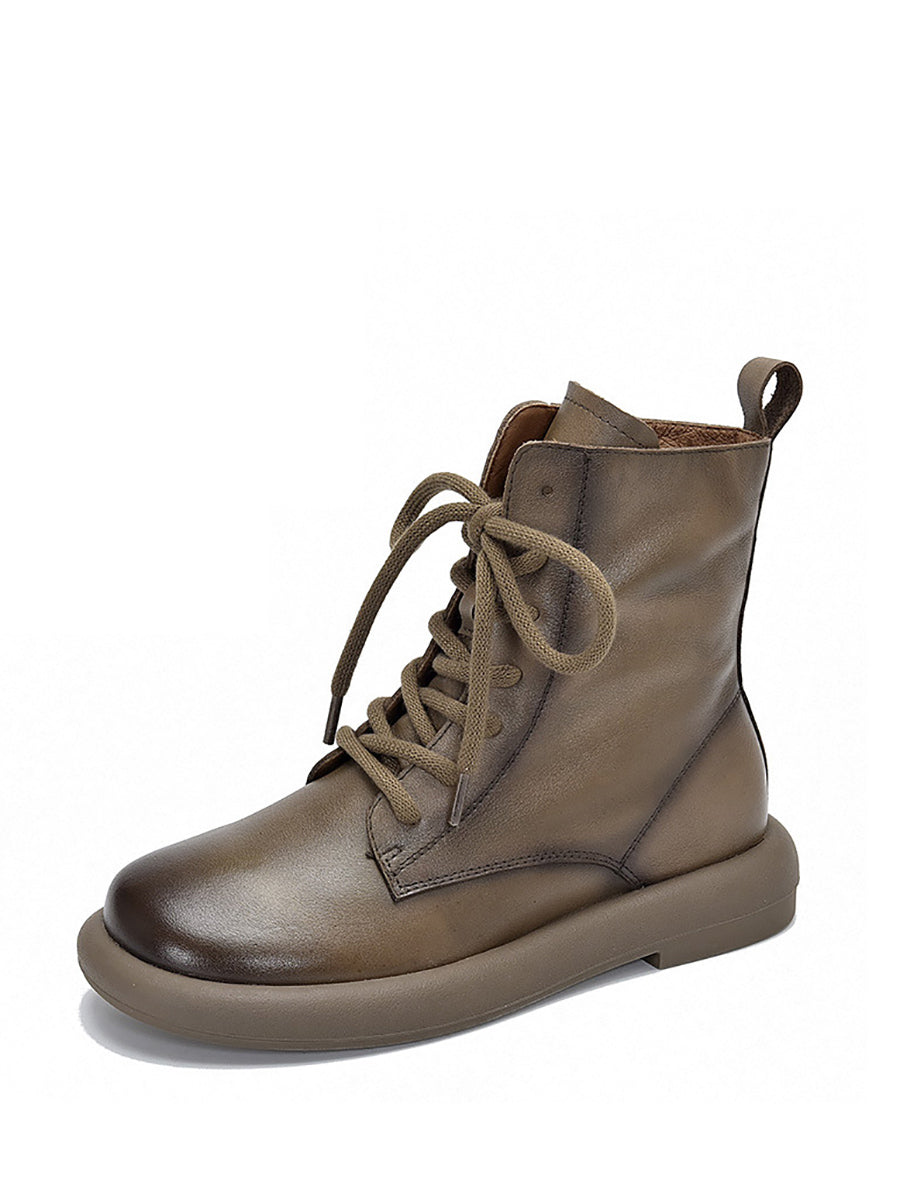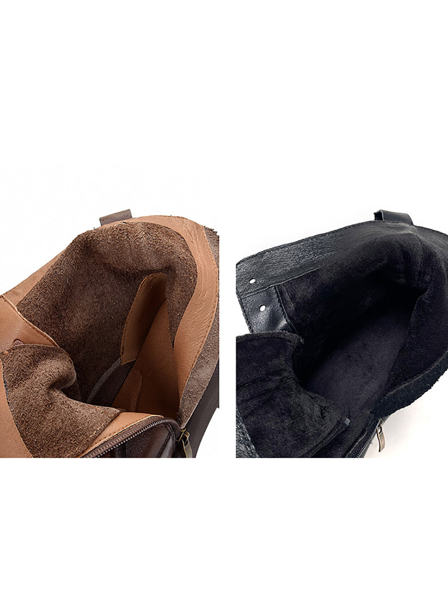 Elevate your style with our Women Genuine Leather Soft Zipper Mid Heel Martin Boots. Crafted from premium leather. these boots offer a soft and comfortable fit. The zipper closure ensures easy on and off. while the mid heel adds a touch of sophistication. Step into luxury with these Martin boots.
