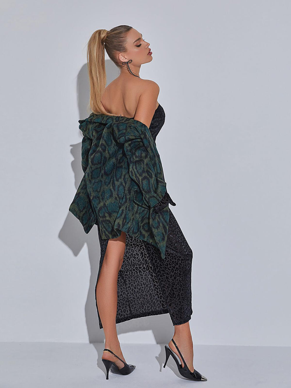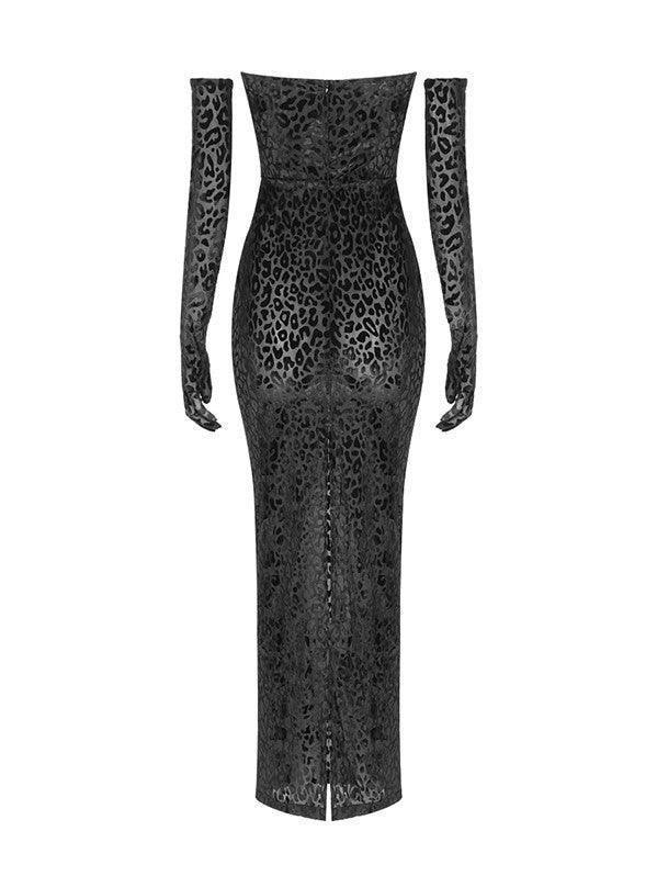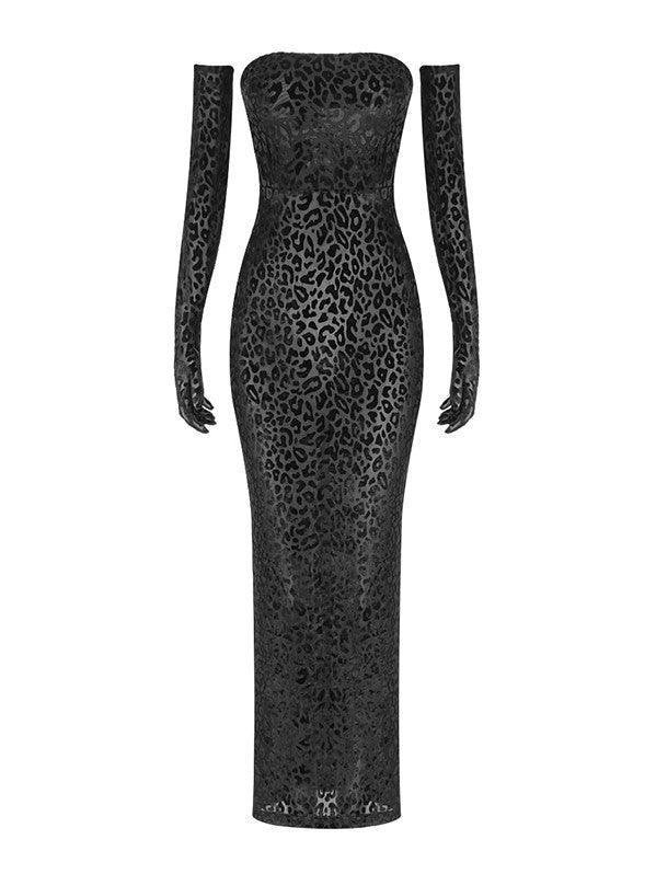 Spice up your closet with our Gianna Leopard Print Bodycon Maxi Dress With Gloves! Designed with a cotton jersey with velvet Devore Leopard spots for your bold persona to shine through attachment to a strapless column silhouette with matching full sleeve length gloves perfect to suit your black-tie attire. All brought to life with a sexy slit at the back of the dress to have them following each step you take! Style with black heels for a look we're loving!