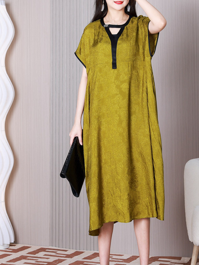 This women's a-line dress is made of soft and comfortable rayon material and is available in three color options: black. yellow. and red. The dress features a flattering V-neckline and a middle waist design that accentuates the figure. The short sleeves provide coverage while still keeping you cool and comfortable in warm weather. The flowy a-line silhouette of the dress makes it a versatile and stylish choice for a variety of occasions. from casual outings to more formal events.The short sleeves provide a relaxed and breezy fit that is perfect for warm weather. The A-line silhouette creates a flowy and feminine look that is both comfortable and stylish. Perfect for dressing up or down. this dress is a must-have addition to any wardrobe.