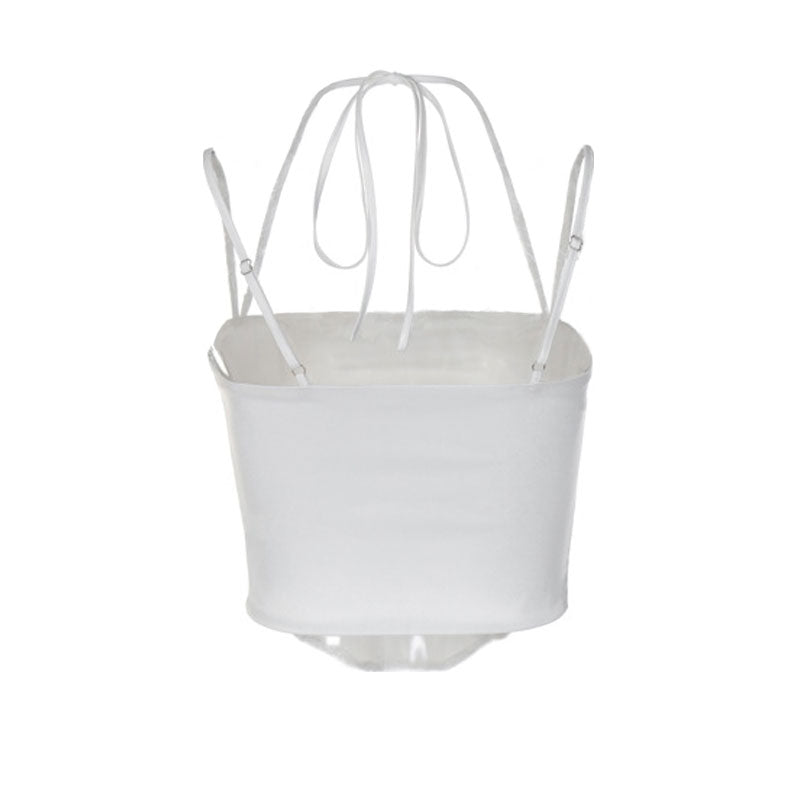 There's something truly mesmerizing about this cute top! Crafted with shimmery polyester and elastane. embellished with a corset-inspired bodice. featuring a halter neck followed with adjustable slim shoulder straps. a concealed side zipper and a hanky hem. ending up with a cropped length. Find more trendy women's corset tops or unique clothing in our boutique. and complete a sexy look with a pair of cargo jeans.