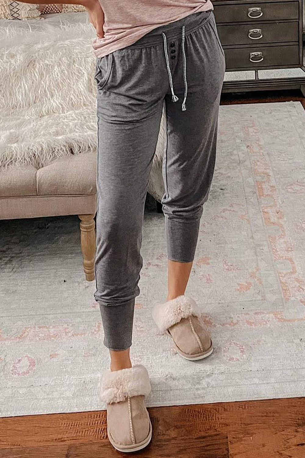 Introducing the Gray Buttoned Drawstring High Waist Jogger Pants. the perfect combination of style and comfort.