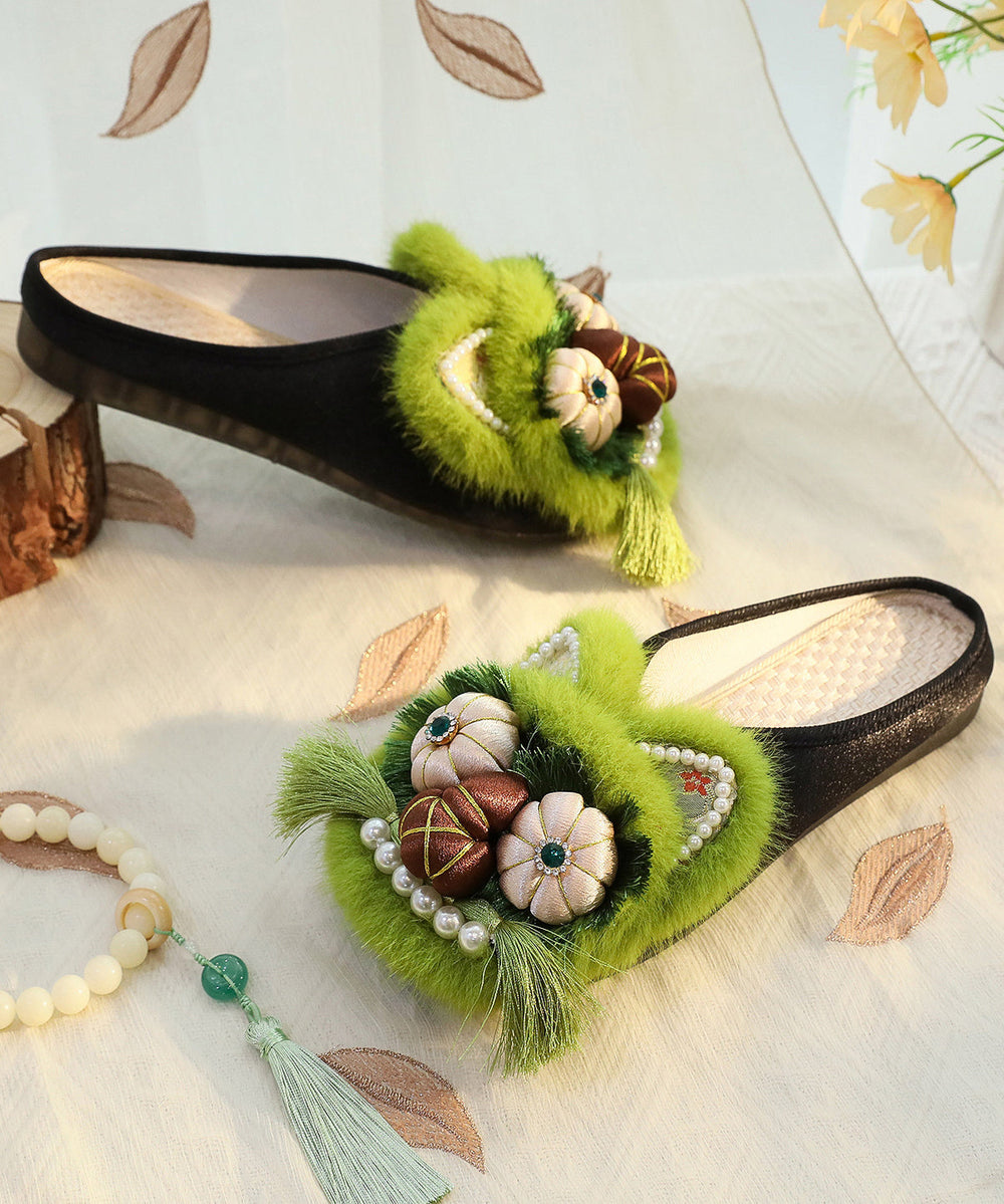 Indulge in the luxurious opulence of our Green Chinese Style Cotton Fabric Slippers Shoes. adorned with delicate Nail Bead details and crafted with the finest cotton fabric. Elevate your footwear collection with these exclusive and elegant slippers.