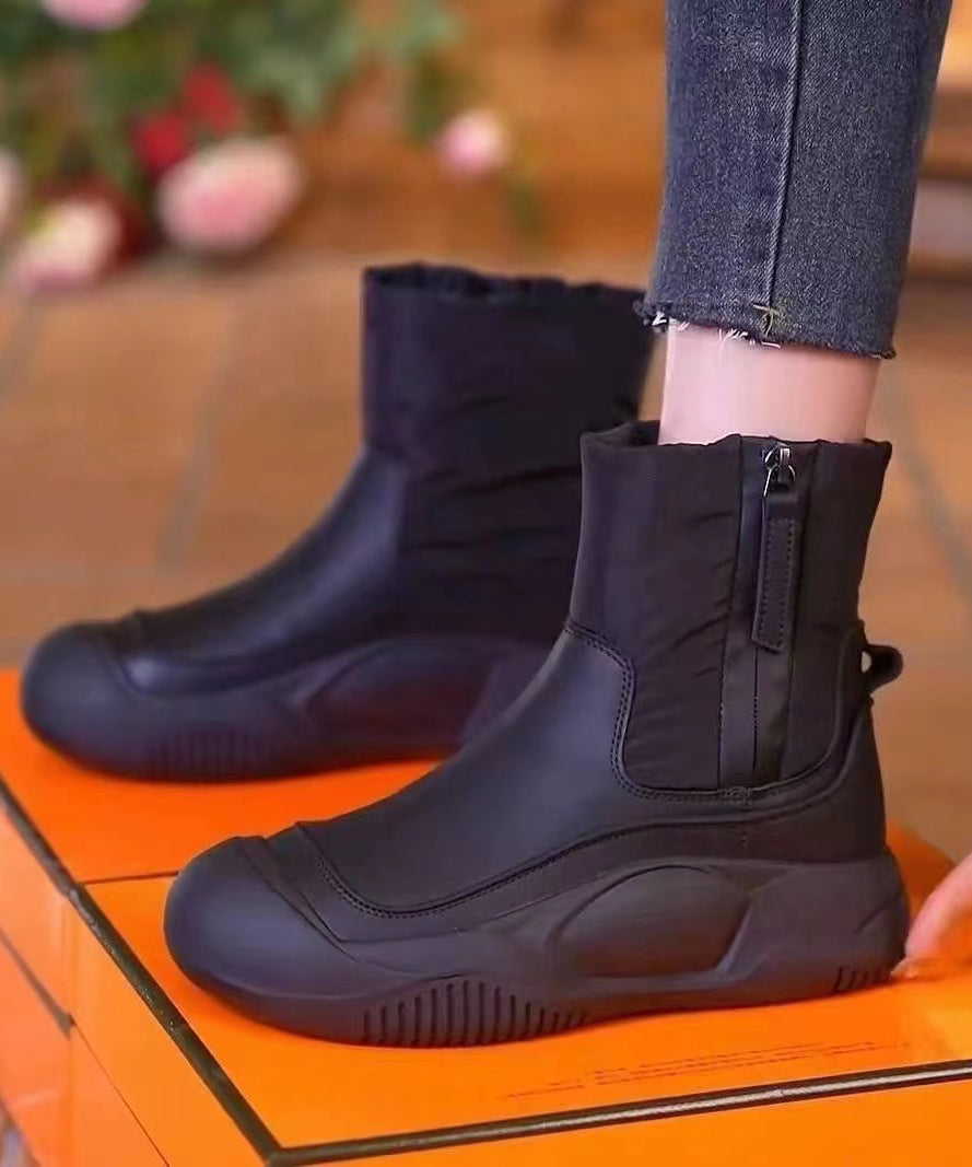 Discover the opulence of our Grey Zippered Chic Splicing Boots. lined with luxurious fuzzy wool for ultimate warmth and comfort.