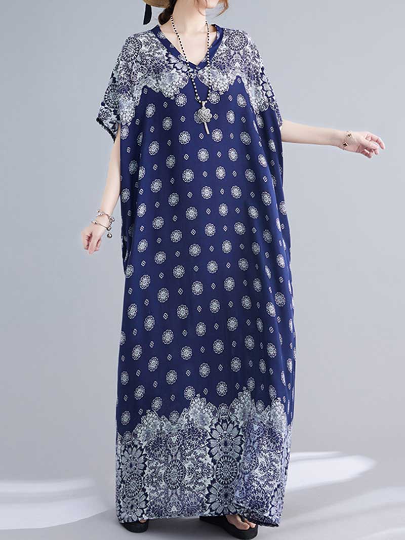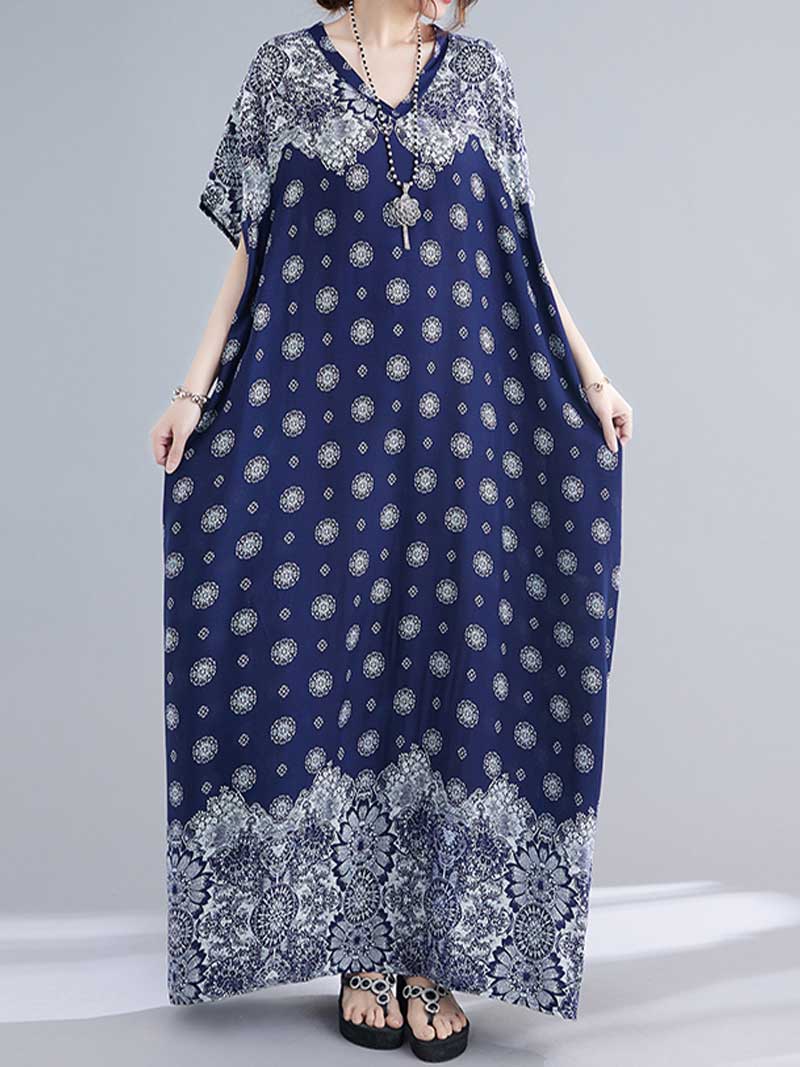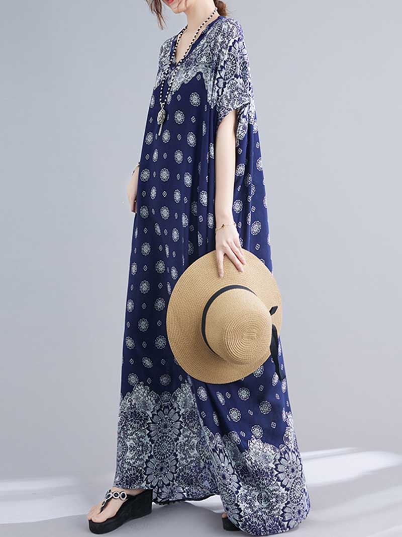 The Hear A Song Printed Kaftan Dress is perfect for a summer day spent by the beach. Made with a light and airy rayon material. this dress won't weigh you down even on the hottest of days. With its loose-fitting waist and comfortable V-neck collar. this dress will keep you feeling cool and stylish all day long. The short sleeves and whimsical floral pattern add a touch of fun to an otherwise classic design. making this kaftan dress perfect for any spring or autumn day.