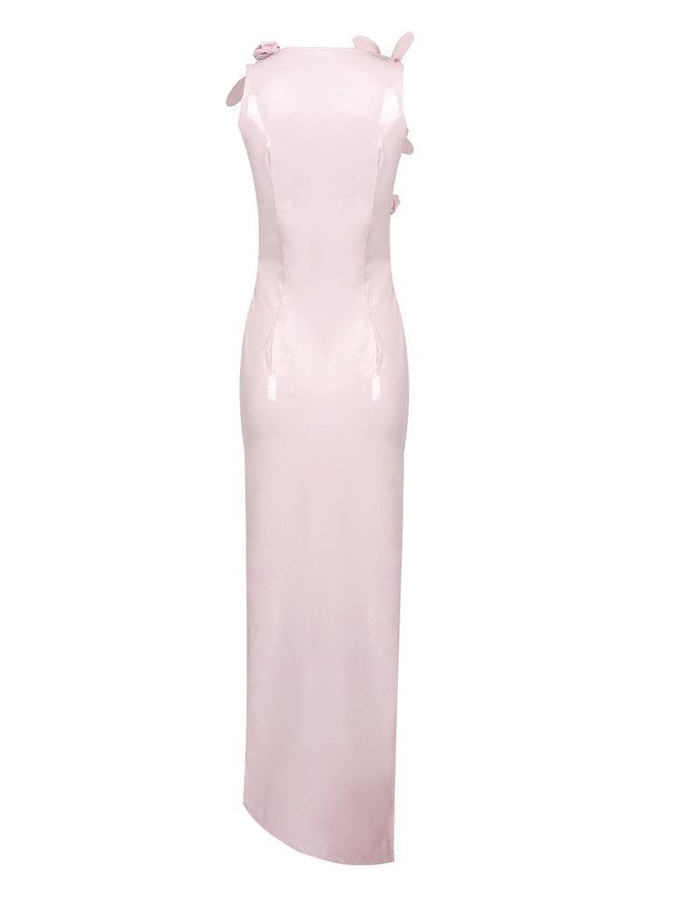 The Hecate Cutout Latex Split Maxi Dress In Blush is a bold fashion statement. It features an eye-catching cutout and is made of a luxe latex fabric that is sleek and will hug your curves. The split makes it incredibly easy to move around and the maxi length provides both coverage and a hint of drama.