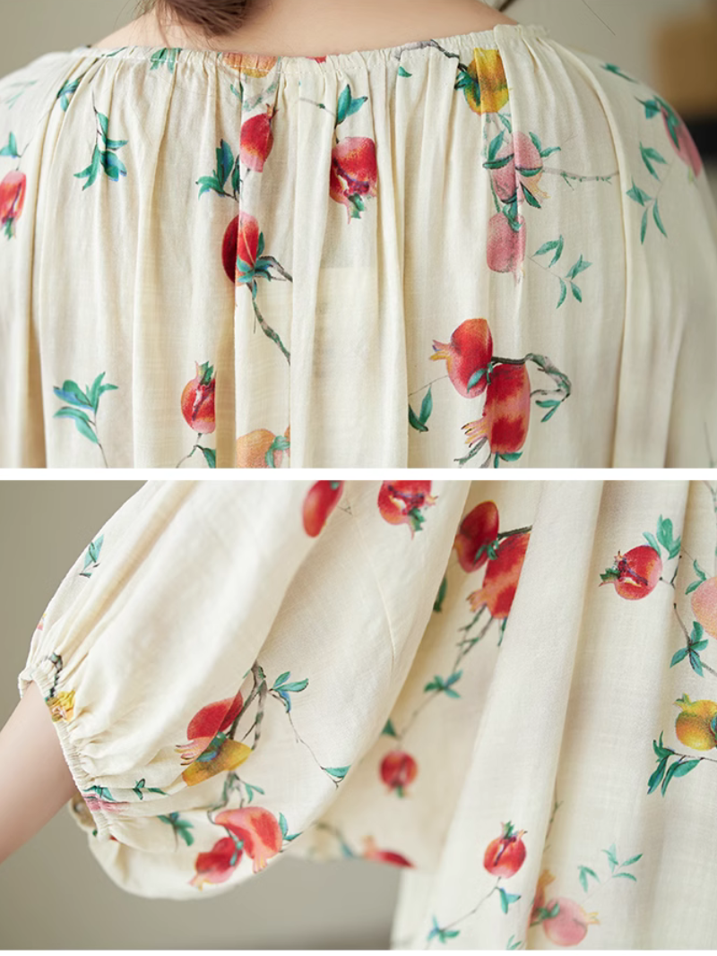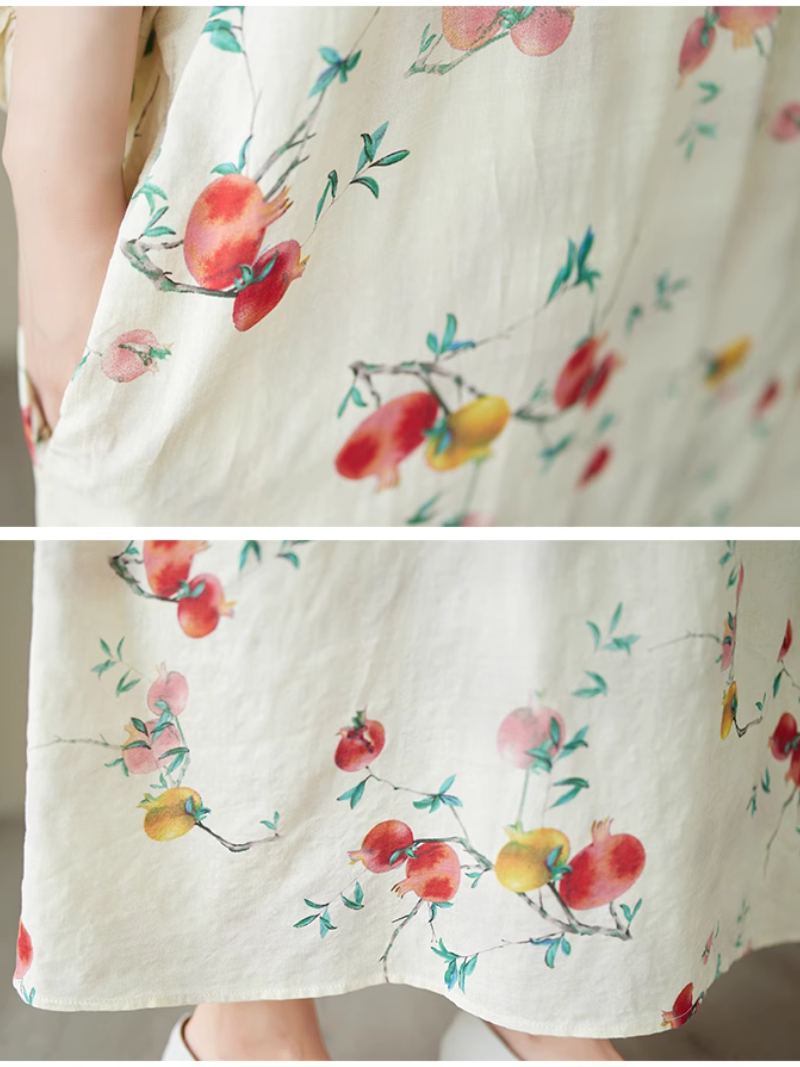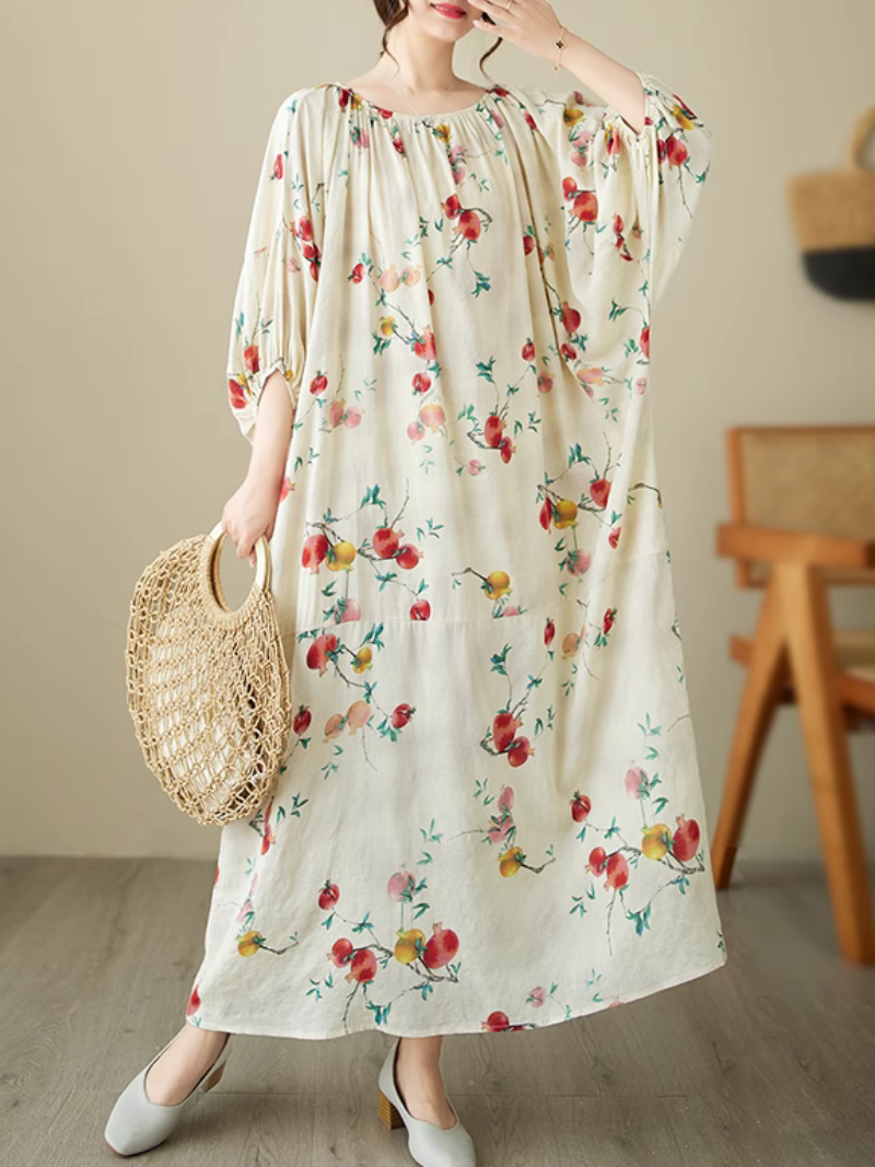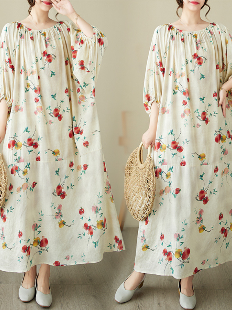 Women's Loose A-Line Dress. the perfect blend of comfort and style. Crafted from a luxurious combination of cotton and linen. this dress ensures breathability and a soft touch against the skin. The eye-catching printing pattern adds a touch of elegance. while the Lantern sleeves and round neck collar offer a flattering and versatile look. Available in a serene White hue. this one-size dress fits beautifully with a length of 125cm and a bust of 170cm. Embrace casual sophistication and make a statement with this effortlessly chic and comfortable A-Line Dress.