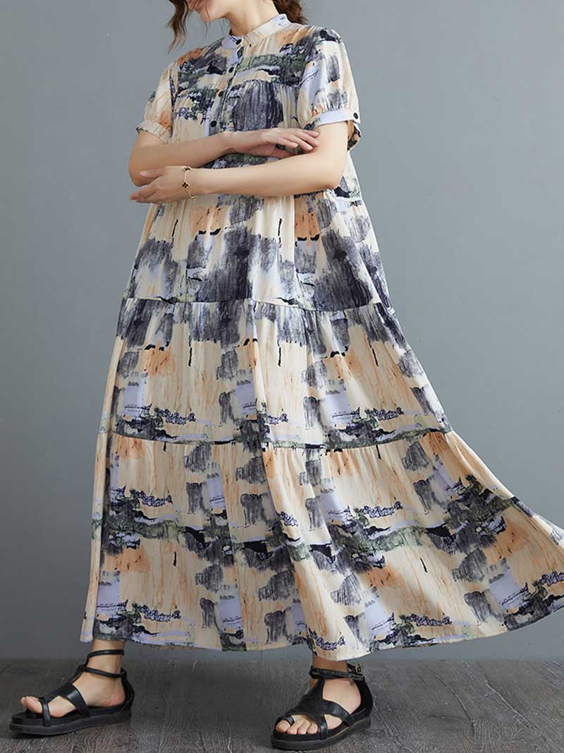 With a carefree and fun style. this dress is perfect for any summer day. Made of lightweight chiffon. it's airy and comfortable with a relaxed waist and short sleeves. The vibrant print is eye-catching and perfect for showing off your personality. Whether you're spending the day at the beach or out running errands. this dress is sure to make you feel confident and beautiful.