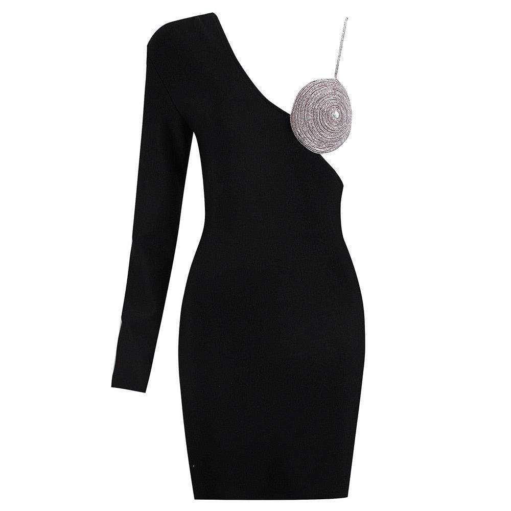 Idolise Asymmetric Sparkly Rhinestone Bra Cocktail Mini Dress