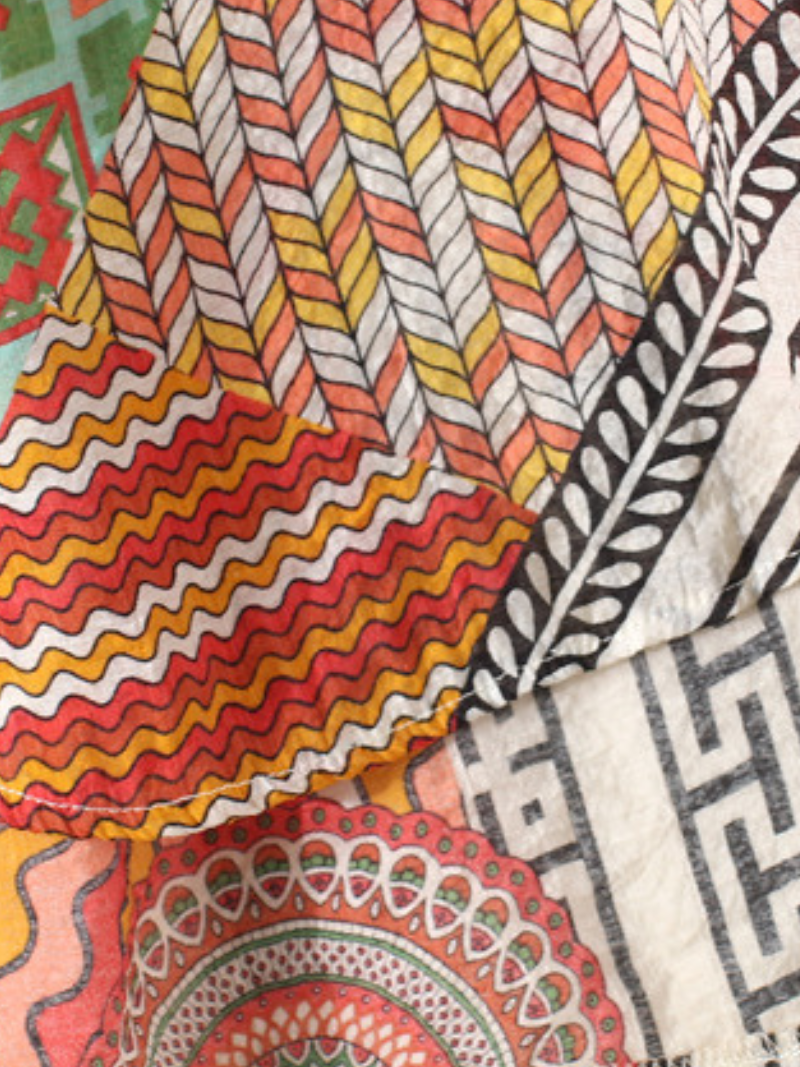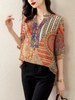 Upgrade your wardrobe with our Women's Printing Short-Sleeved Tops. a perfect blend of cotton and tencel for a soft and luxurious feel. Embrace the vibrant shades of red and orange. adding a pop of color to your outfit. The V-neck design and five-quarter sleeves strike a balance between elegance and modernity. Available in multiple sizes (L/XL/2XL/3XL). these tops cater to all body shapes. Length varies from 65cm to 74cm. while the bust ranges from 122cm to 134cm. Shoulders measure between 44cm to 47cm. Elevate your style with these fashionable and comfortable tops for any occasion.