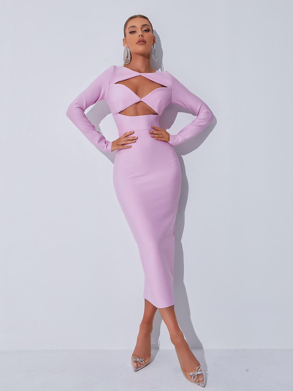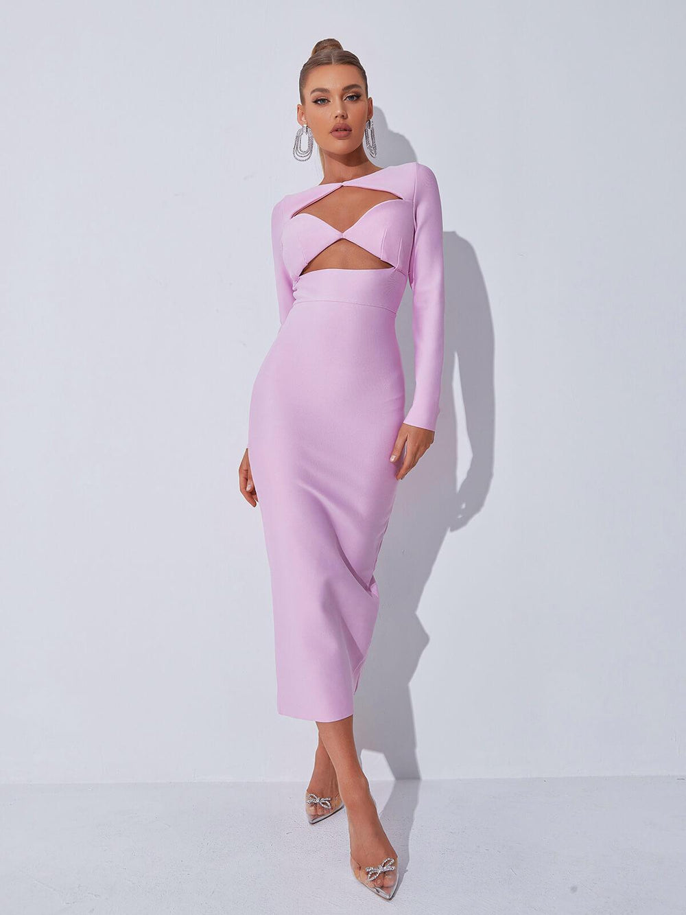Let's not waste any time and step right out in the Isobel Long Sleeve Cutout Bandage Dress! Crafted from our infamous signature stretch bandage fabric. it features a curve hugging fit. and sexy cut outs to the front. The below knee pencil cut is classy and feminine. and the long sleeves look stylish and are perfect for the colder weather.