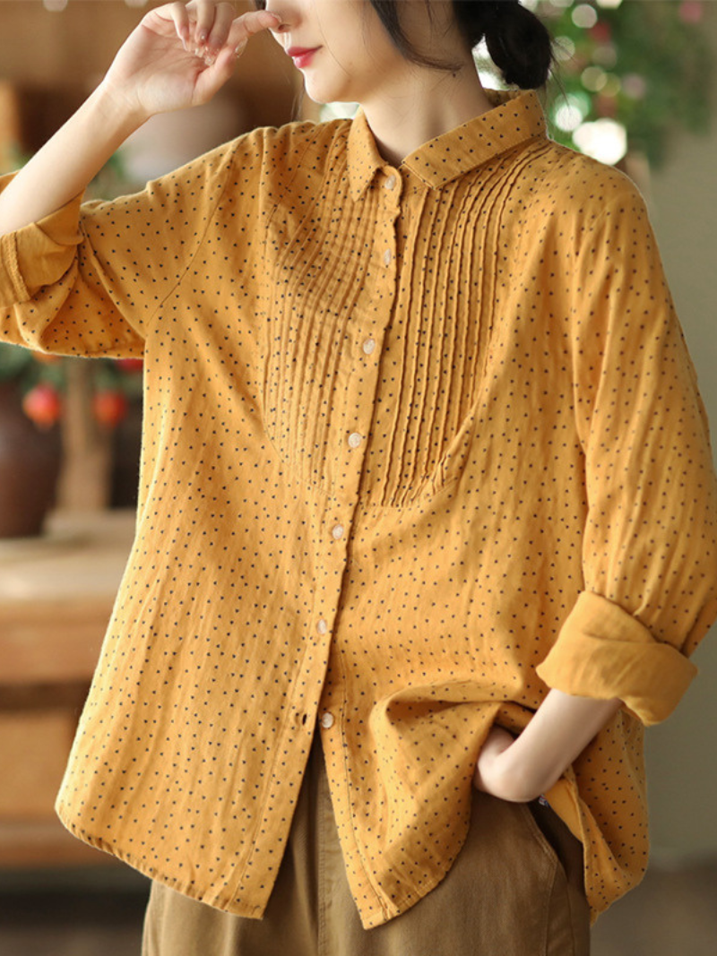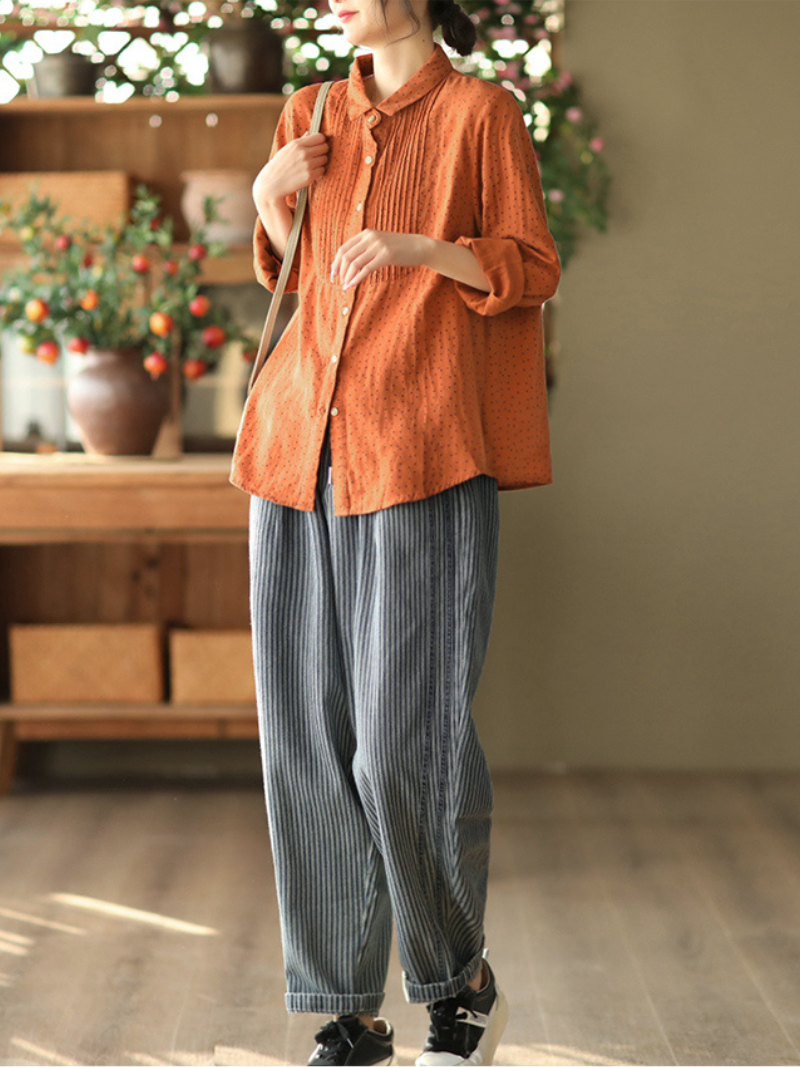A women's cotton lapel collar cardigan long sleeve shirt is a versatile and comfortable piece of clothing that is perfect for both casual and formal occasions. The shirt is made from soft and breathable cotton fabric. providing a relaxed and comfortable fit. The lapel collar and cardigan style add a sophisticated touch to the overall design. while the long sleeves provide warmth and coverage.This dress also has different color variations like ( coffee green / orange / yellow)The cardigan style makes it perfect for layering over other garments for added warmth and versatility. Overall. a women's cotton lapel collar cardigan long sleeve shirt is a wardrobe staple that offers both style and comfort.